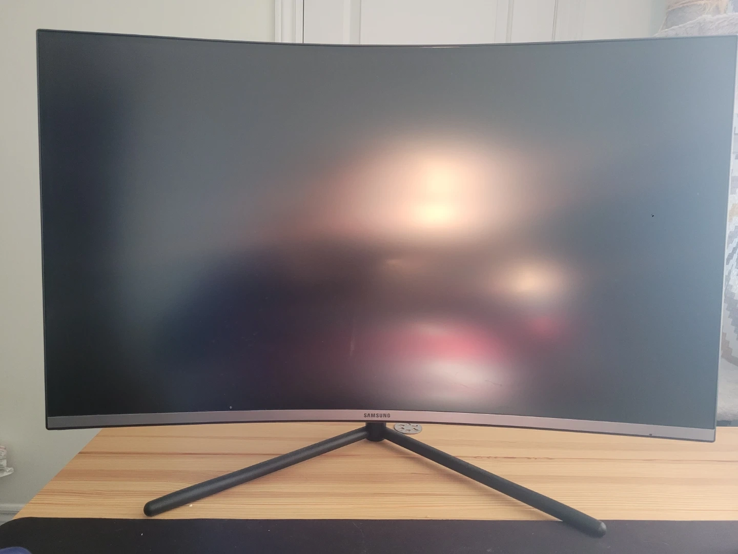 Samsung curved computer monitor. This display offers a wide, immersive viewing experience. It's a great addition for gaming or productivity setups.