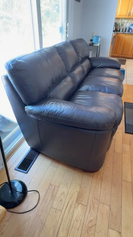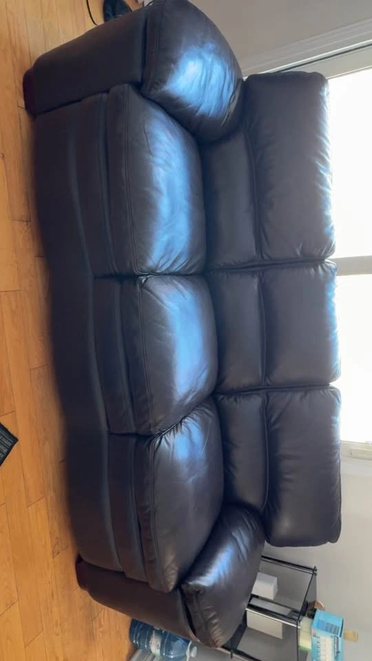 Dark brown, high-quality leather 3-seater couch. Comfortable and sturdy. Gently used and well-maintained. Perfect for adding a touch of elegance to your living room. Estate sale, need gone ASAP.