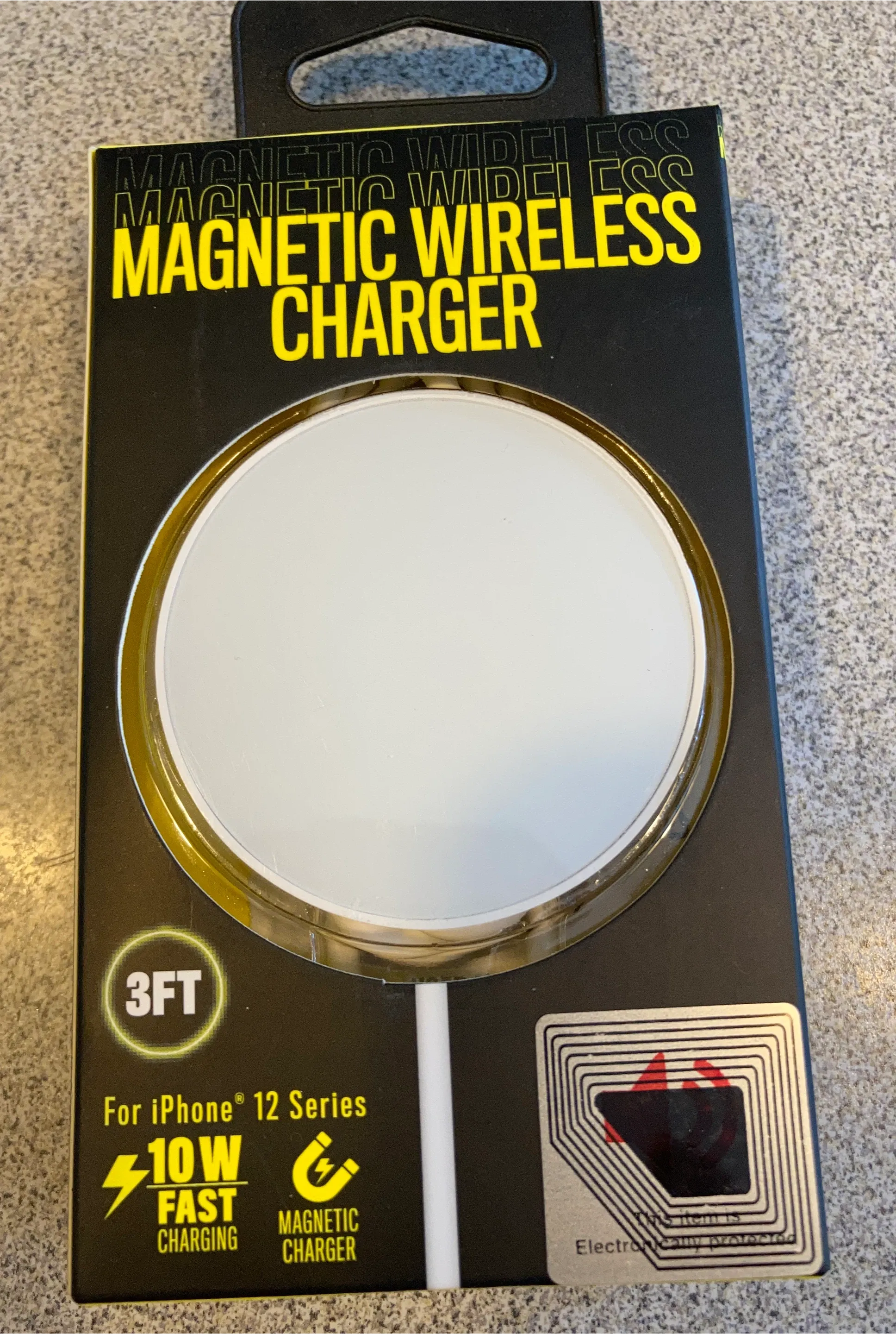 This magnetic wireless charger offers 10W fast charging for iPhone 12 series devices. It features strong and safe magnetic connectors and requires a USB-C enabled power source. It's compatible with iPhone 8 and newer Qi-enabled devices. Includes charger and instructions.