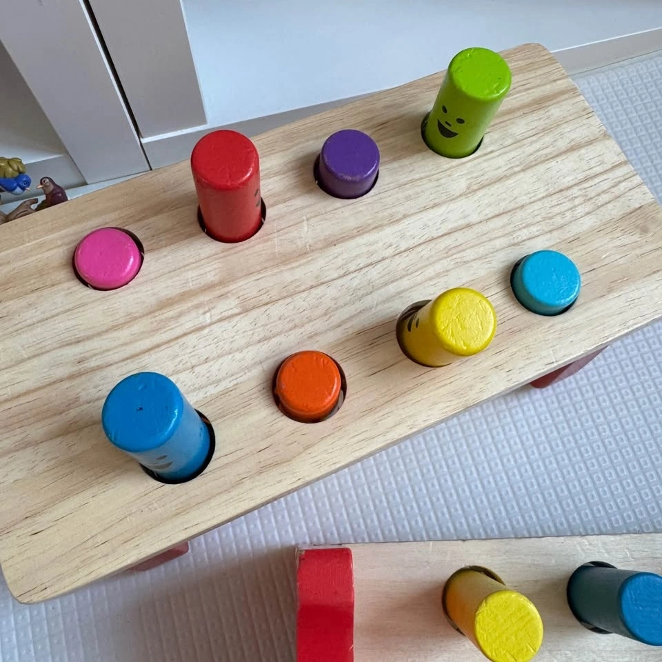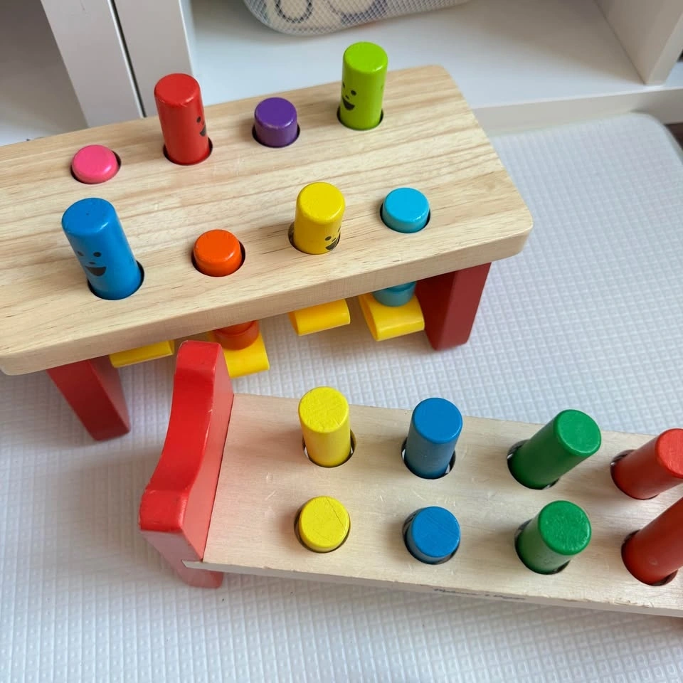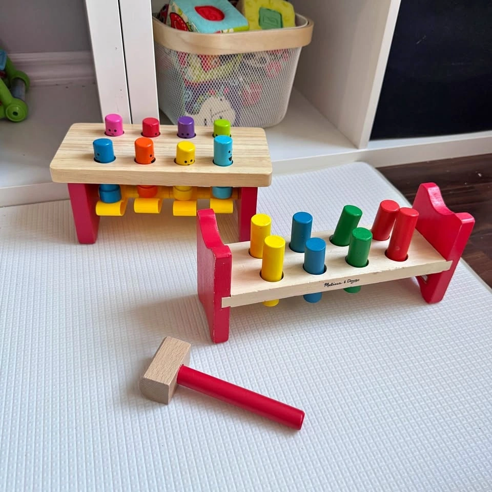 Two Melissa & Doug wooden pound benches with mallet. All pegs included. Shows cosmetic wear from play but fully functional and sturdy. Great classic toy for toddlers. Selling as a set. Pick up in Richmond Hill.