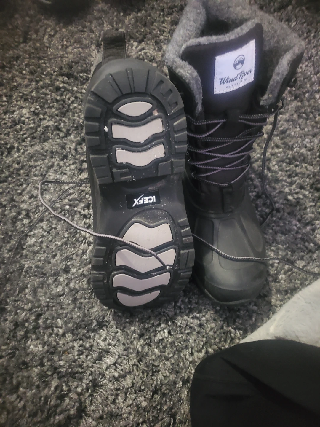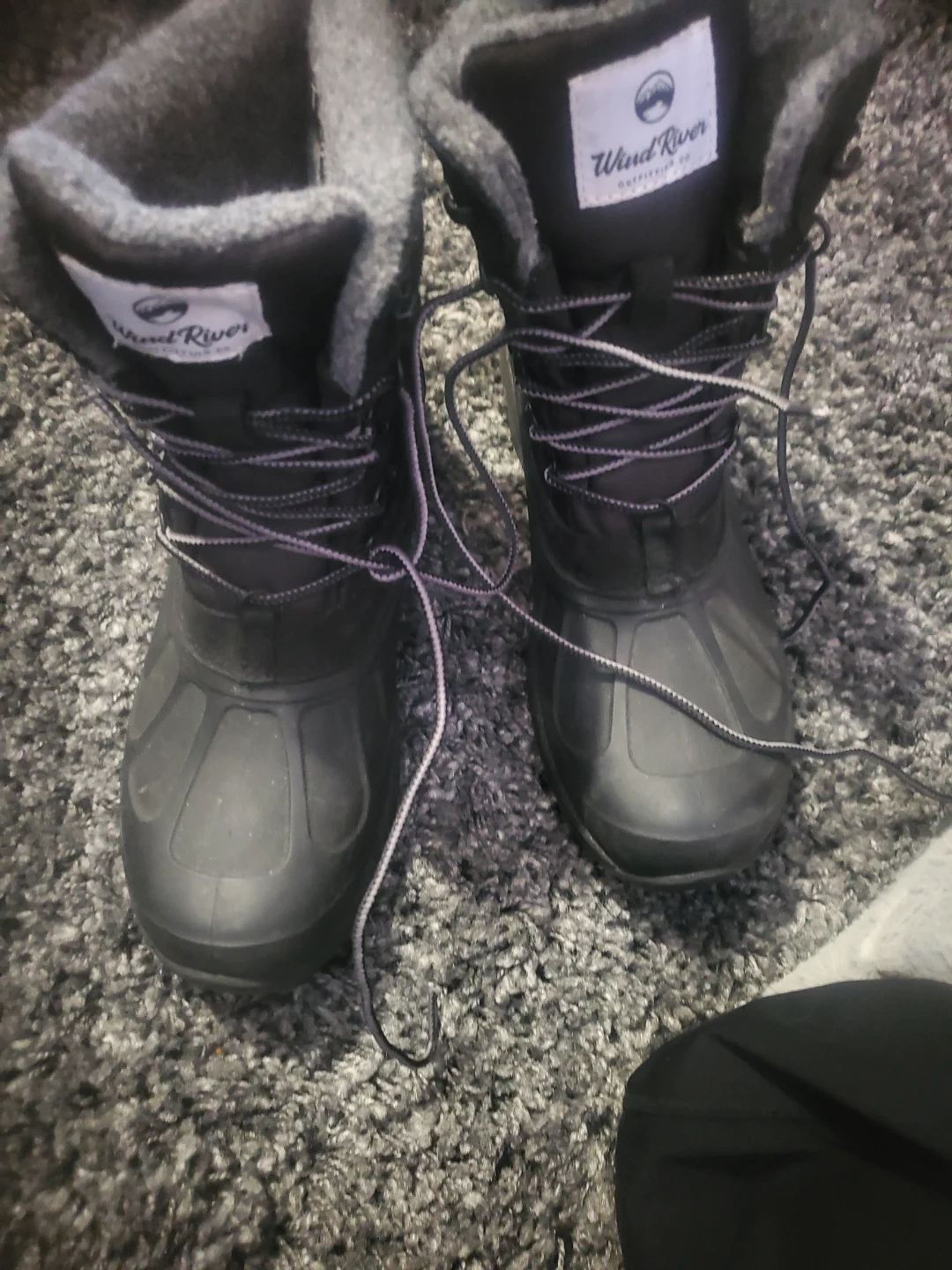 Wind River insulated snow boots. Features a waterproof rubber lower and insulated upper. Lace-up front for a secure fit. Size is 10.