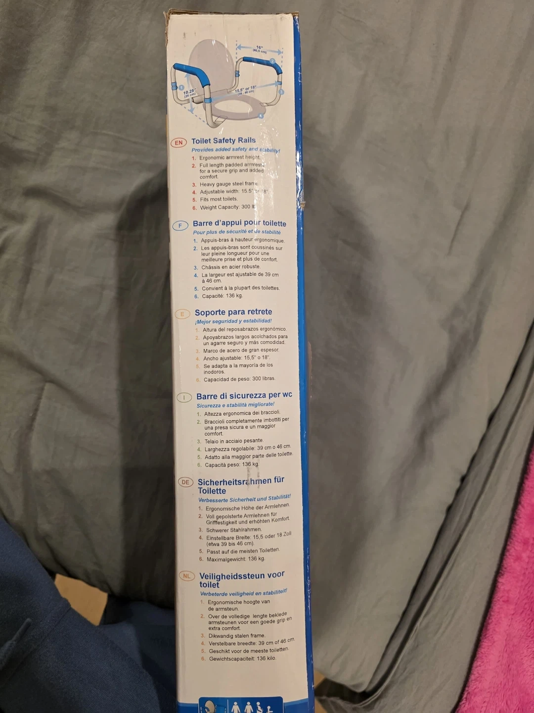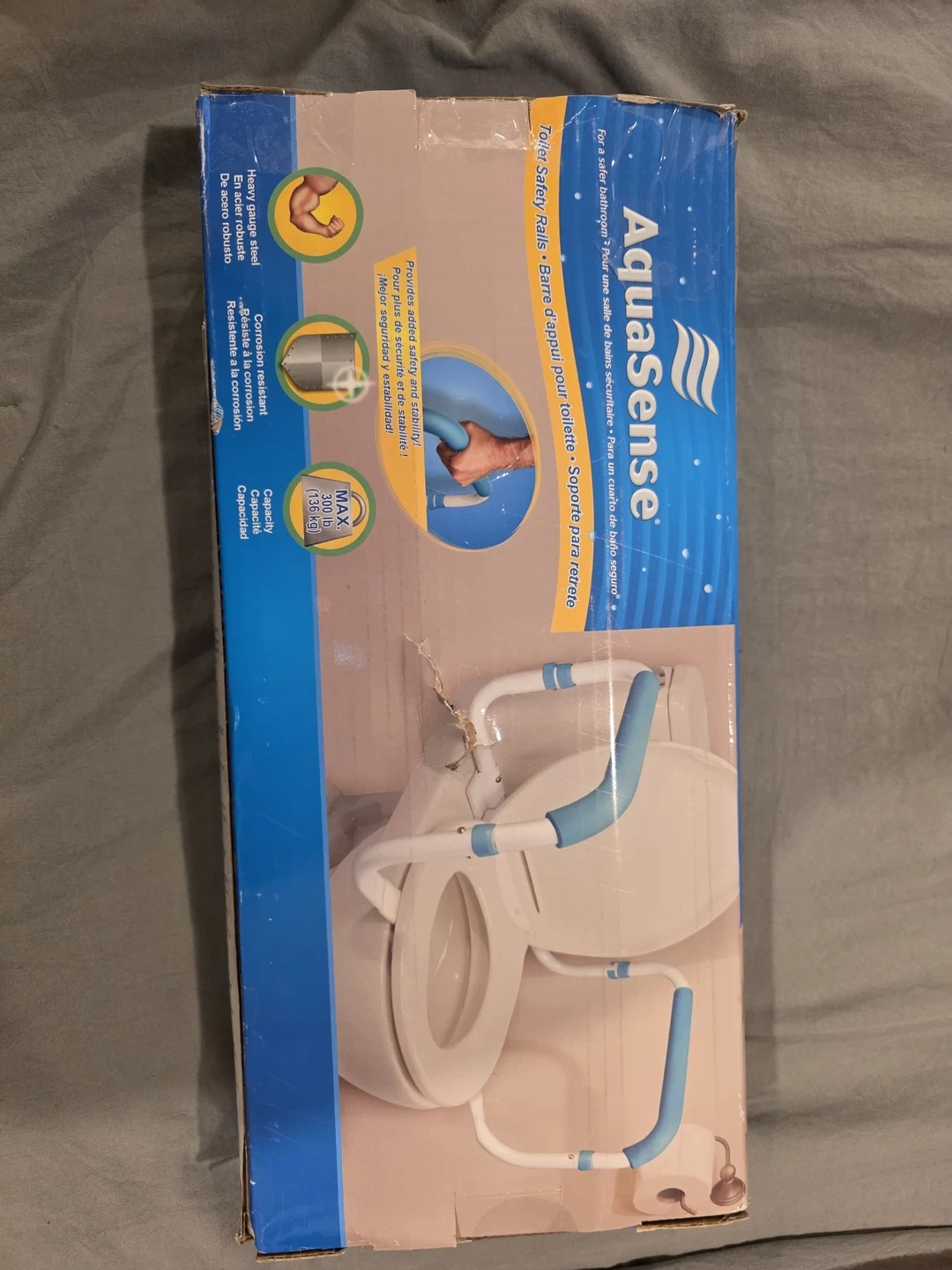 AquaSense toilet safety rails provide added stability and safety in the bathroom. Made with heavy gauge steel for durability. Corrosion resistant construction ensures long-lasting use. Maximum weight capacity is 136 kg (300 lbs).