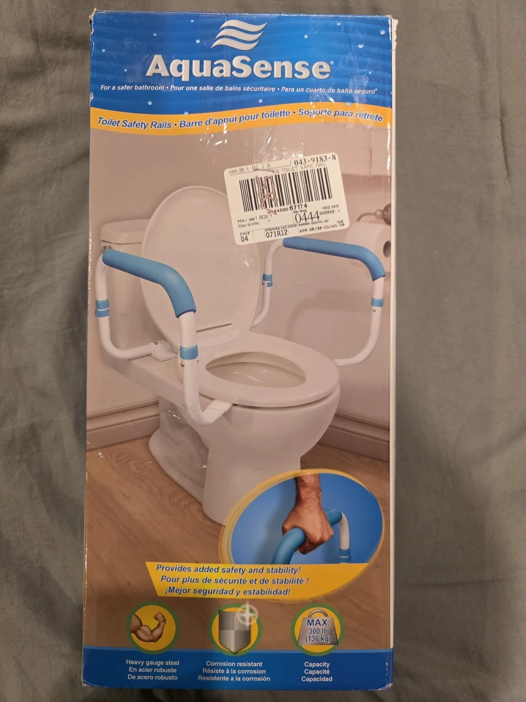 AquaSense toilet safety rails provide added stability and safety in the bathroom. Made with heavy gauge steel for durability. Corrosion resistant construction ensures long-lasting use. Maximum weight capacity is 136 kg (300 lbs).