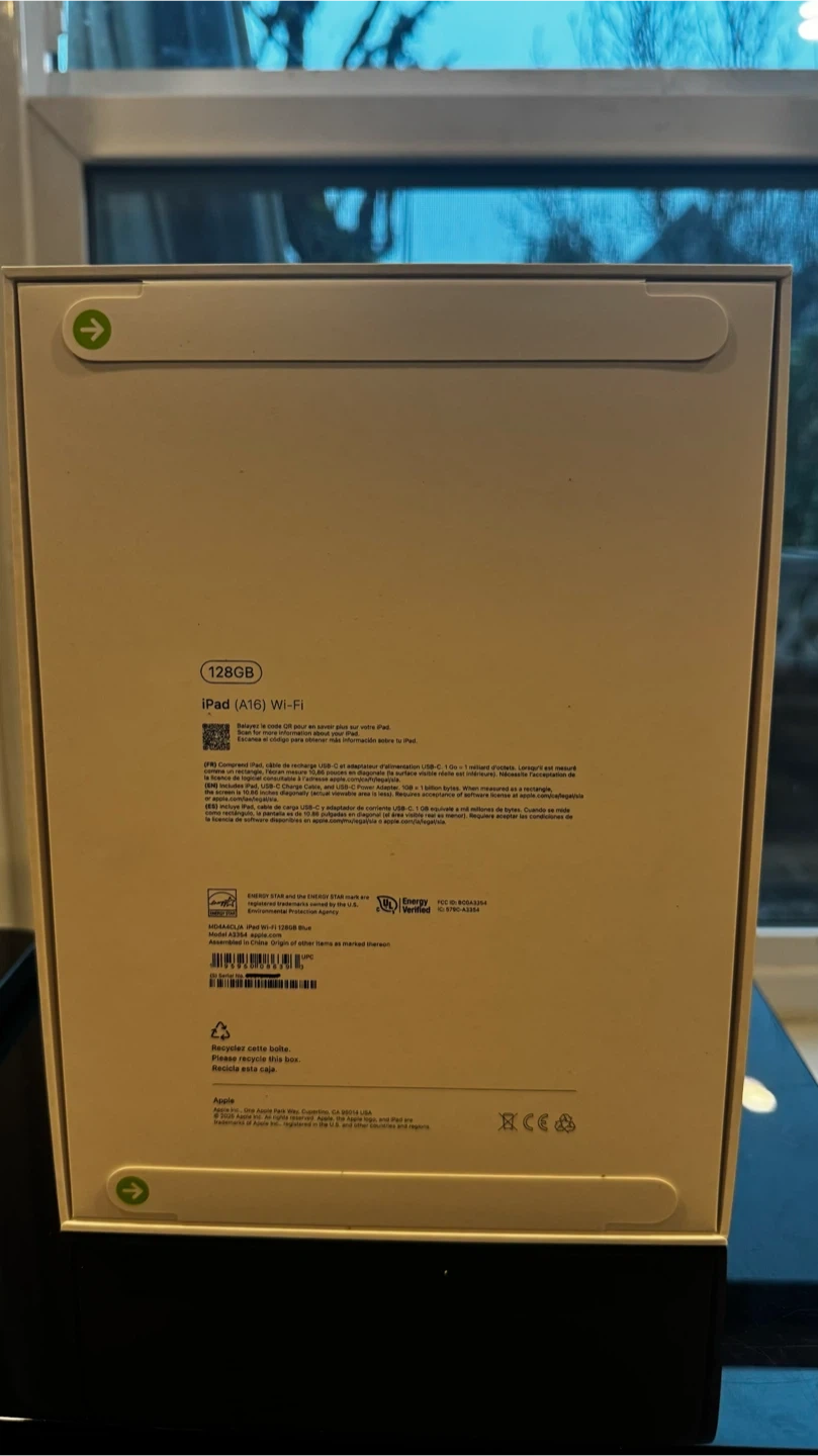 This is a new Apple iPad (A16) Wi-Fi model with 128GB storage. It's sealed in its original box. The iPad features a Retina display and an A16 Bionic chip. This device is perfect for everyday tasks, entertainment, and productivity.