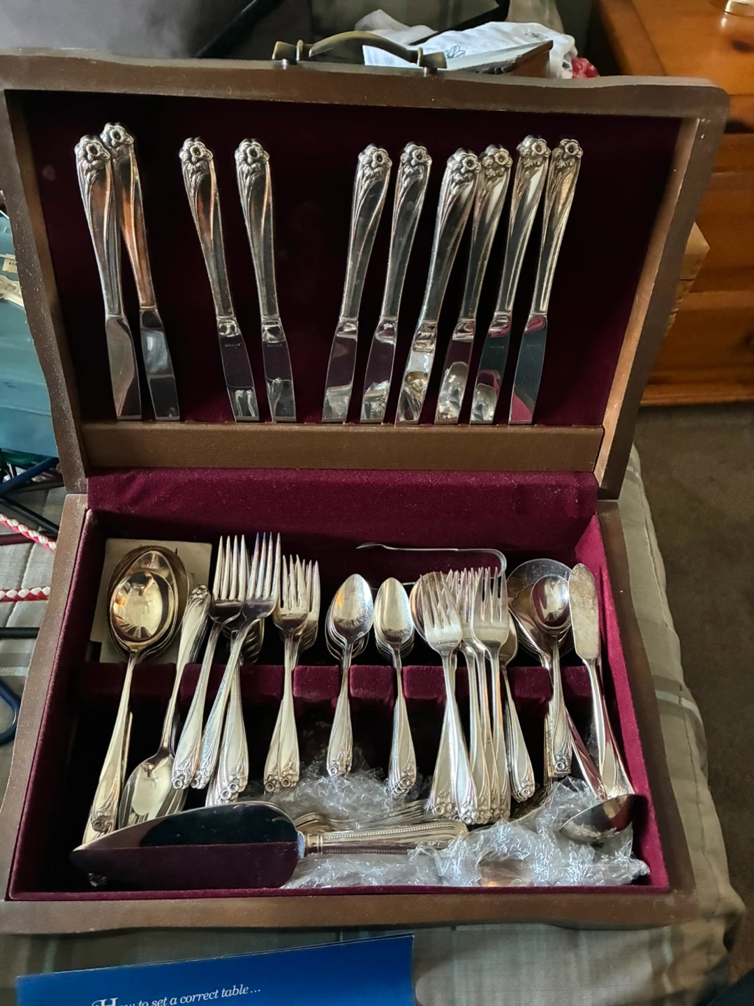A vintage Jasco sterling silverware set from J. Anderson Smith Company Limited. This comprehensive set includes various forks, knives, and spoons, all housed in a wooden case. It's perfect for formal dining occasions. Silverware is polished and ready for use!