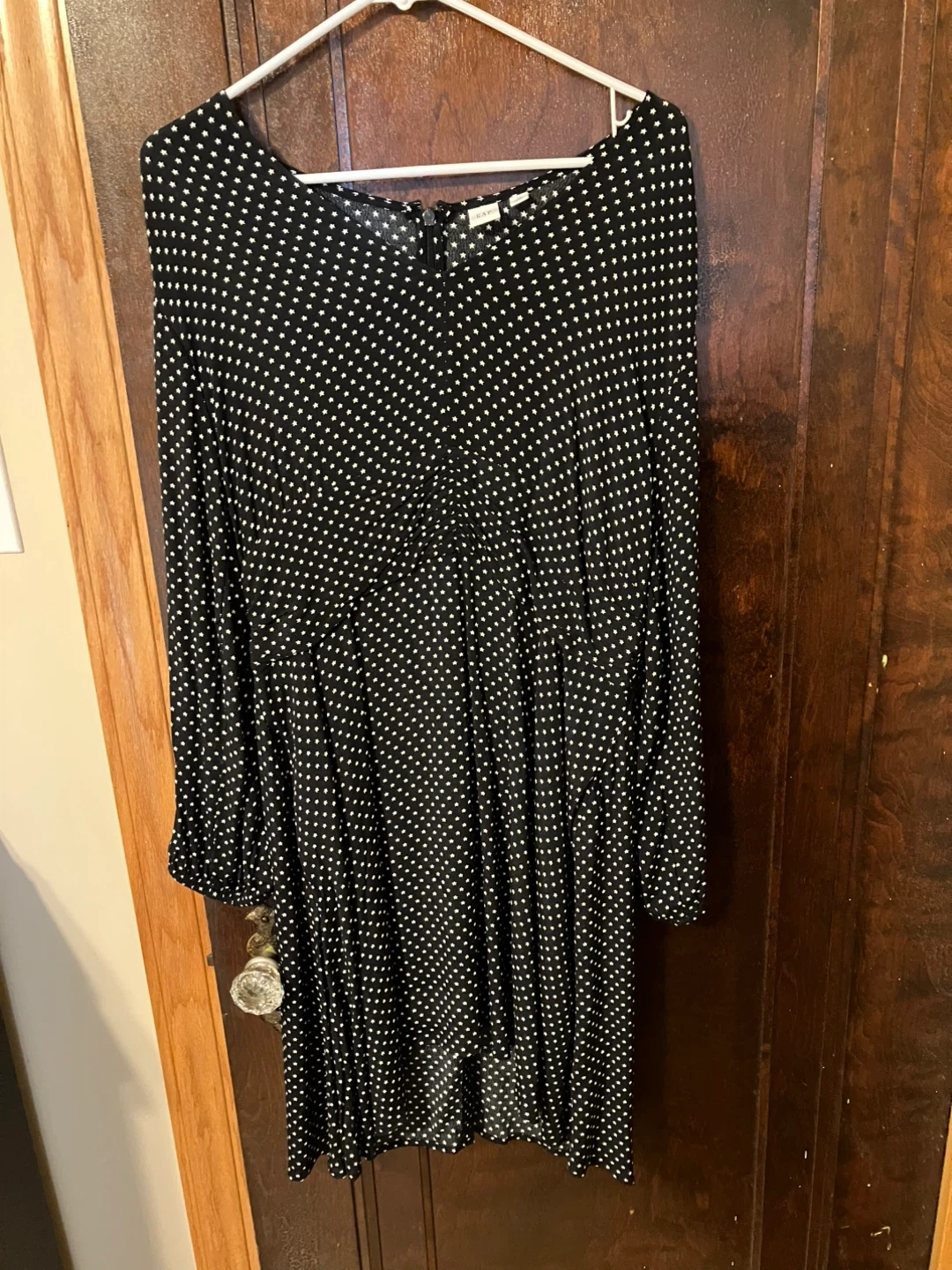 This GAP dress features a black background with a white star print. It's a size 14 Tall.. can also be worn like a tunic dress with leggings!
