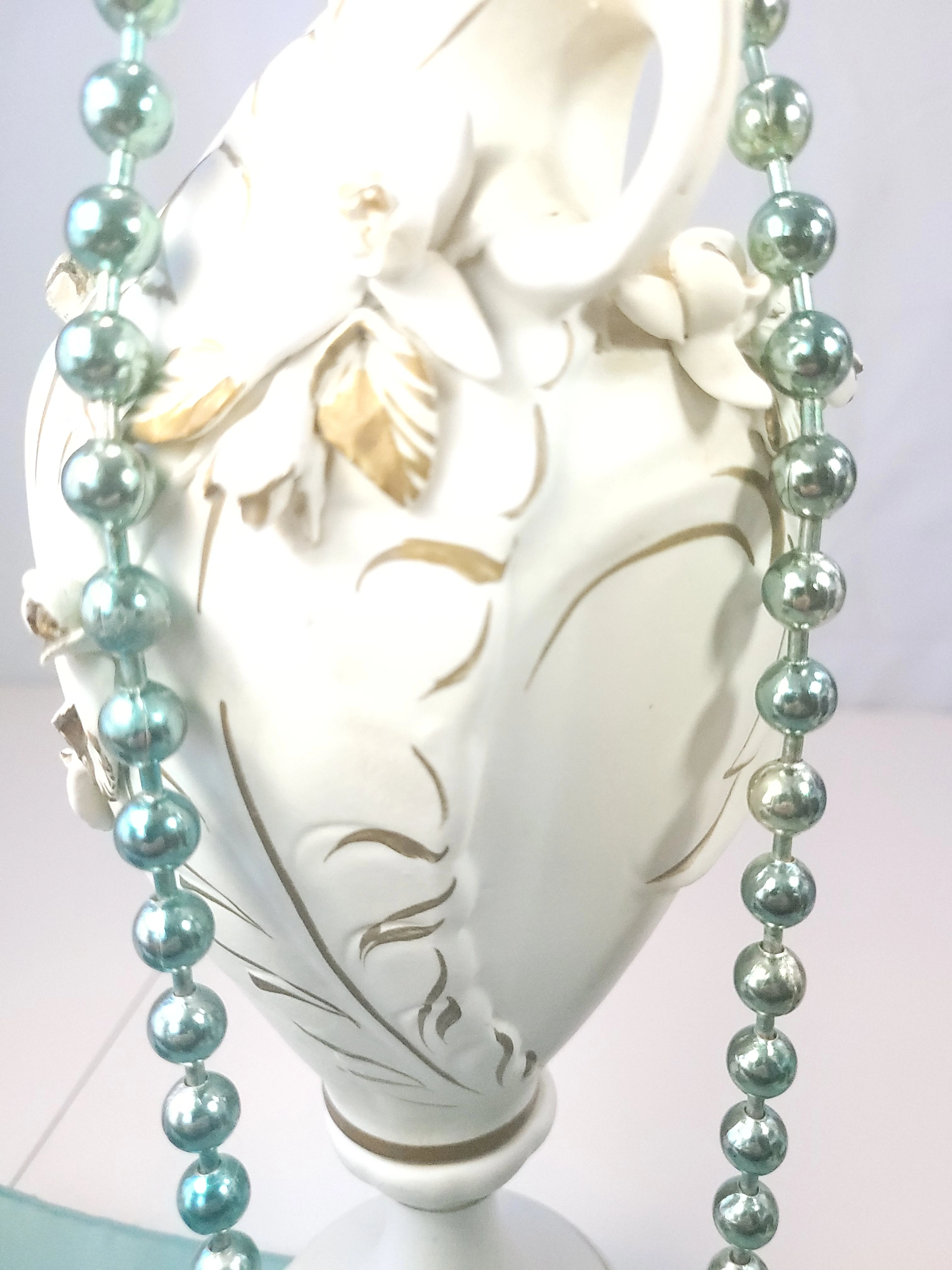 This is a stunning 1960s vintage ball chain necklace in a vibrant, metallic turquoise. At a generous 36 inches, this "Opera" length strand is a quintessential 1960s accessory, perfect for wearing as one long dramatic loop or doubling up for a layered look. The metallic finish gives the beads a beautiful luster that catches the light.