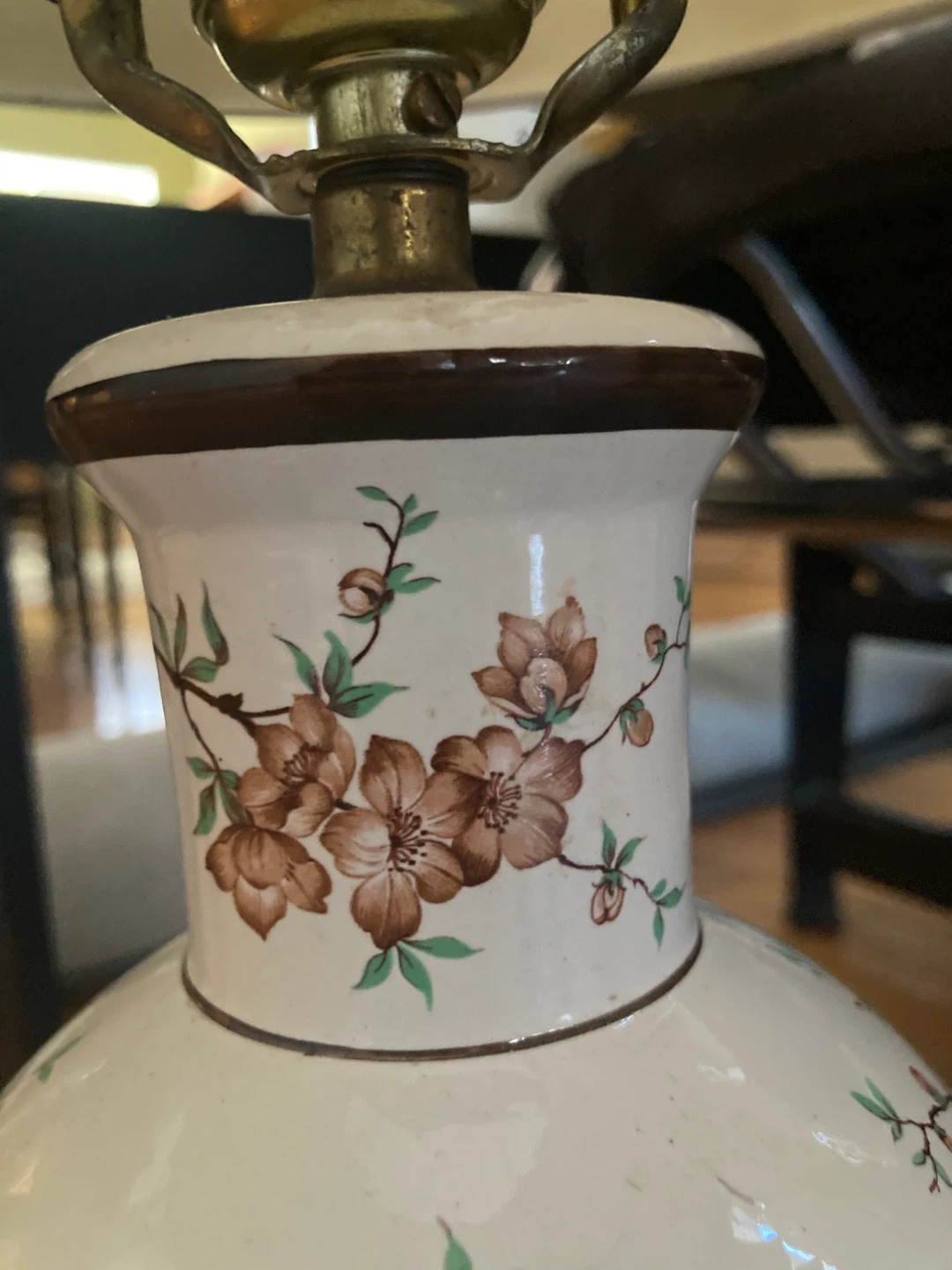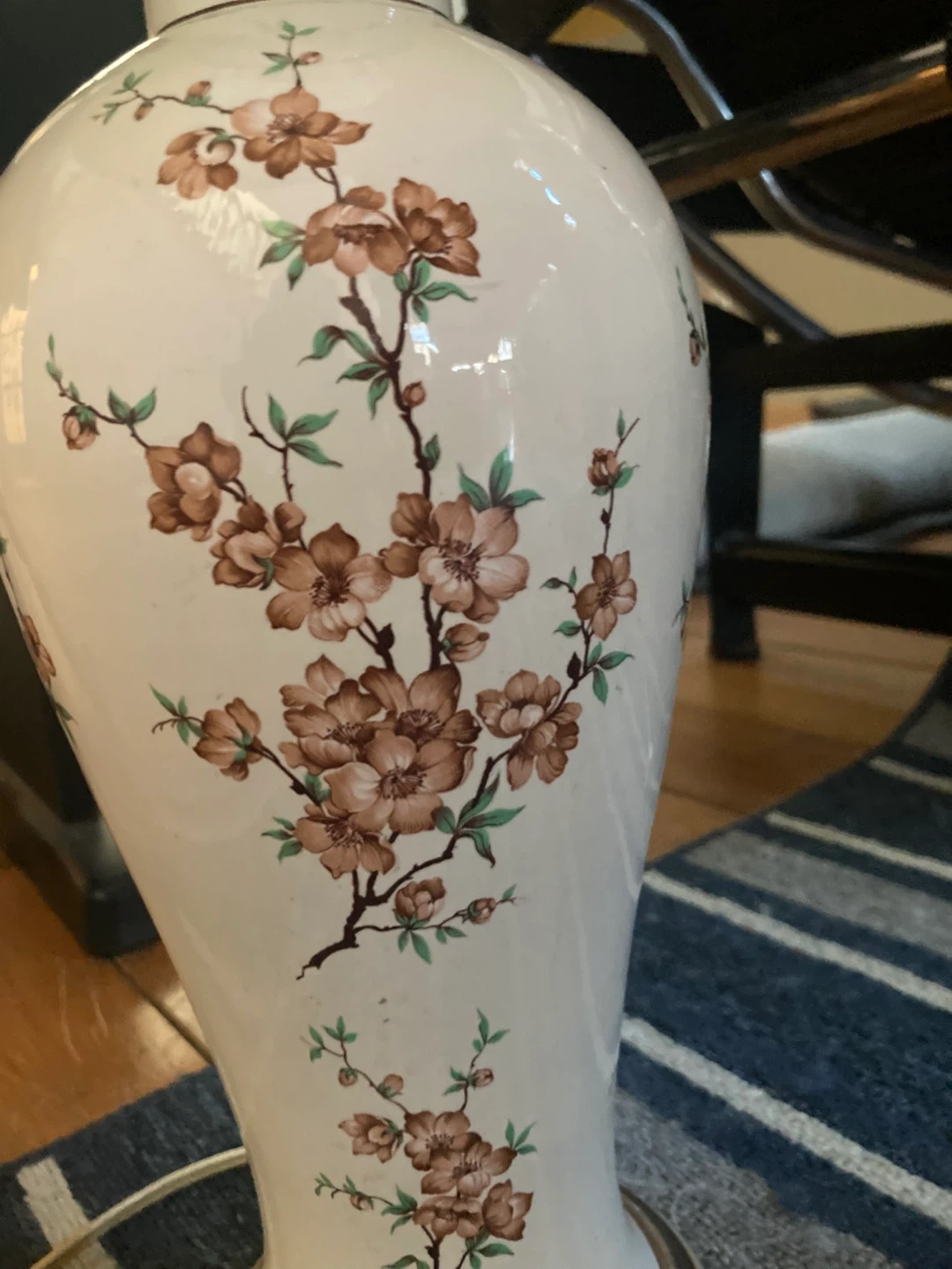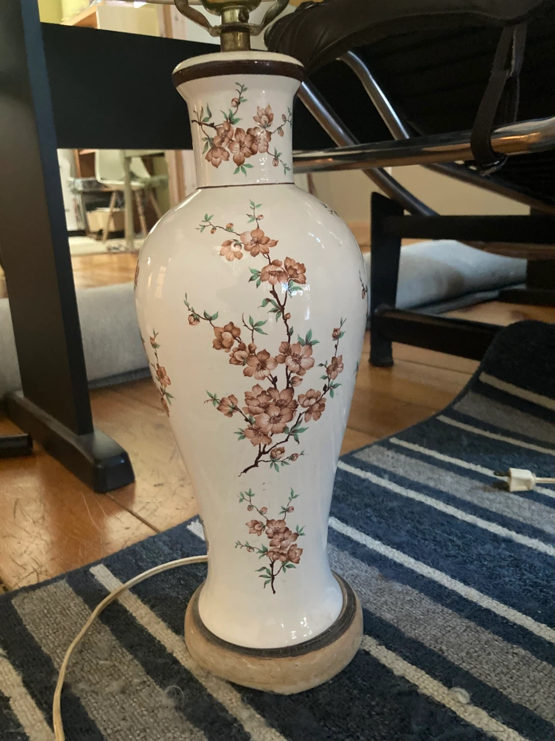 this adorable retro ceramic lamp is in good working condition. it has a super cute grandmacore vibe, and will lend that feeling of coziness to your space.