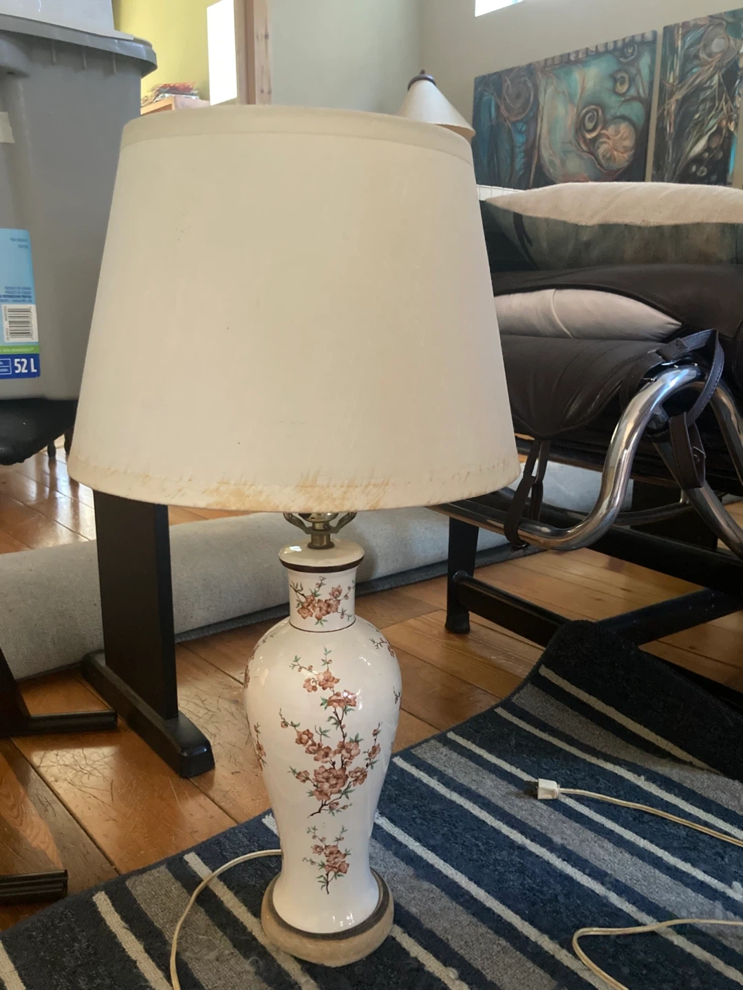 this adorable retro ceramic lamp is in good working condition. it has a super cute grandmacore vibe, and will lend that feeling of coziness to your space.