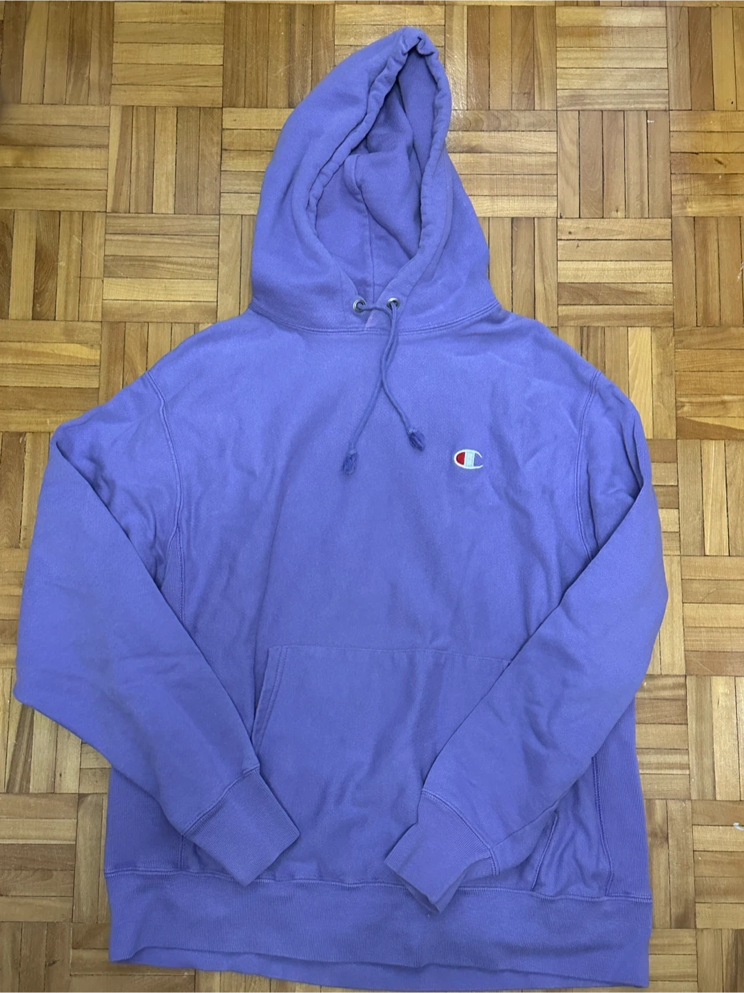 Large purple hoodie. It looks blue in the pic but it should look more like purple. Small bleach stain on the top but in great condition. Smoke free and pet free household. Pick up anywhere within Parkdale or Dufferin mall.
