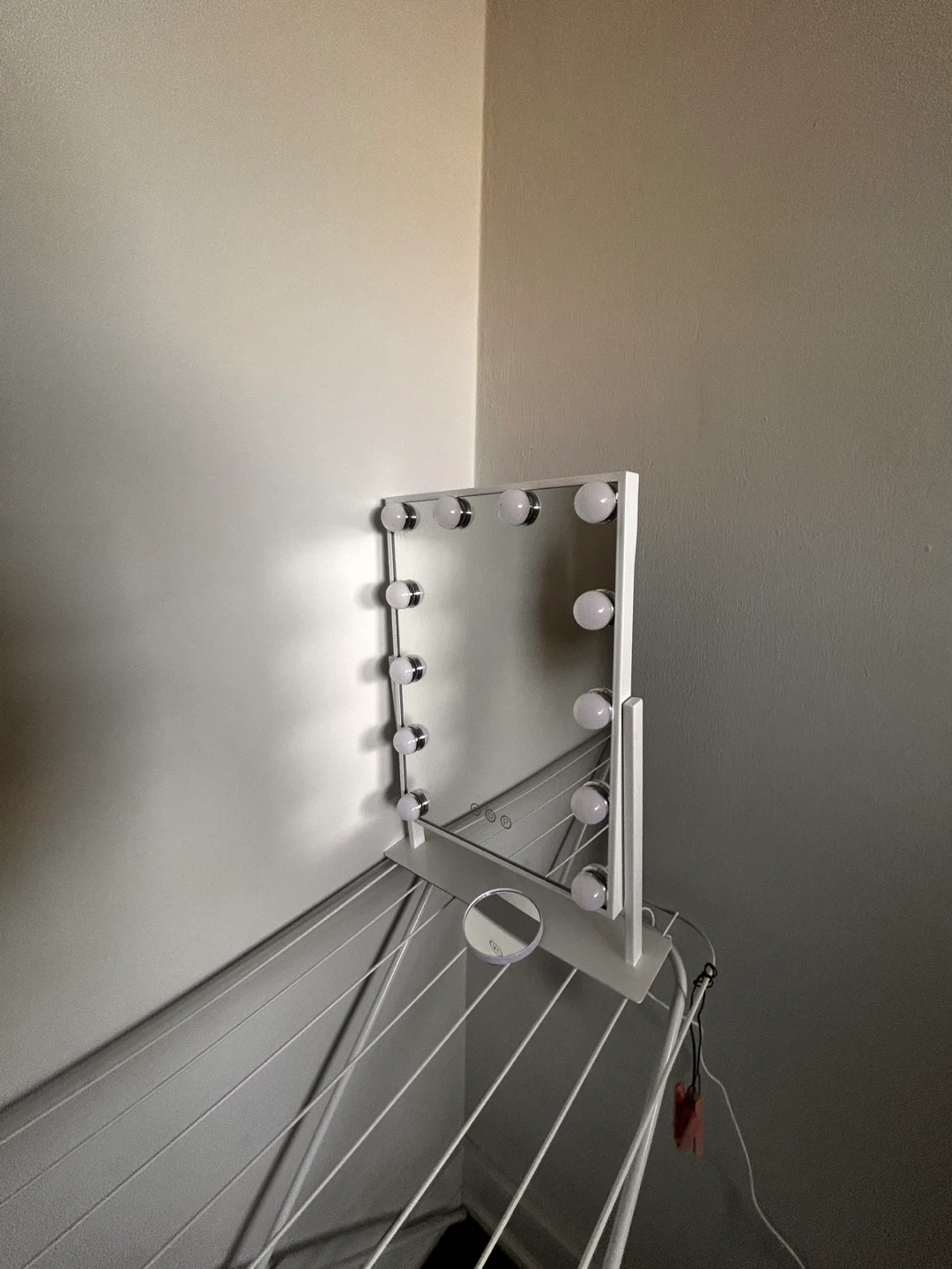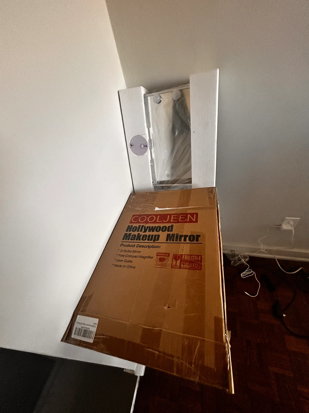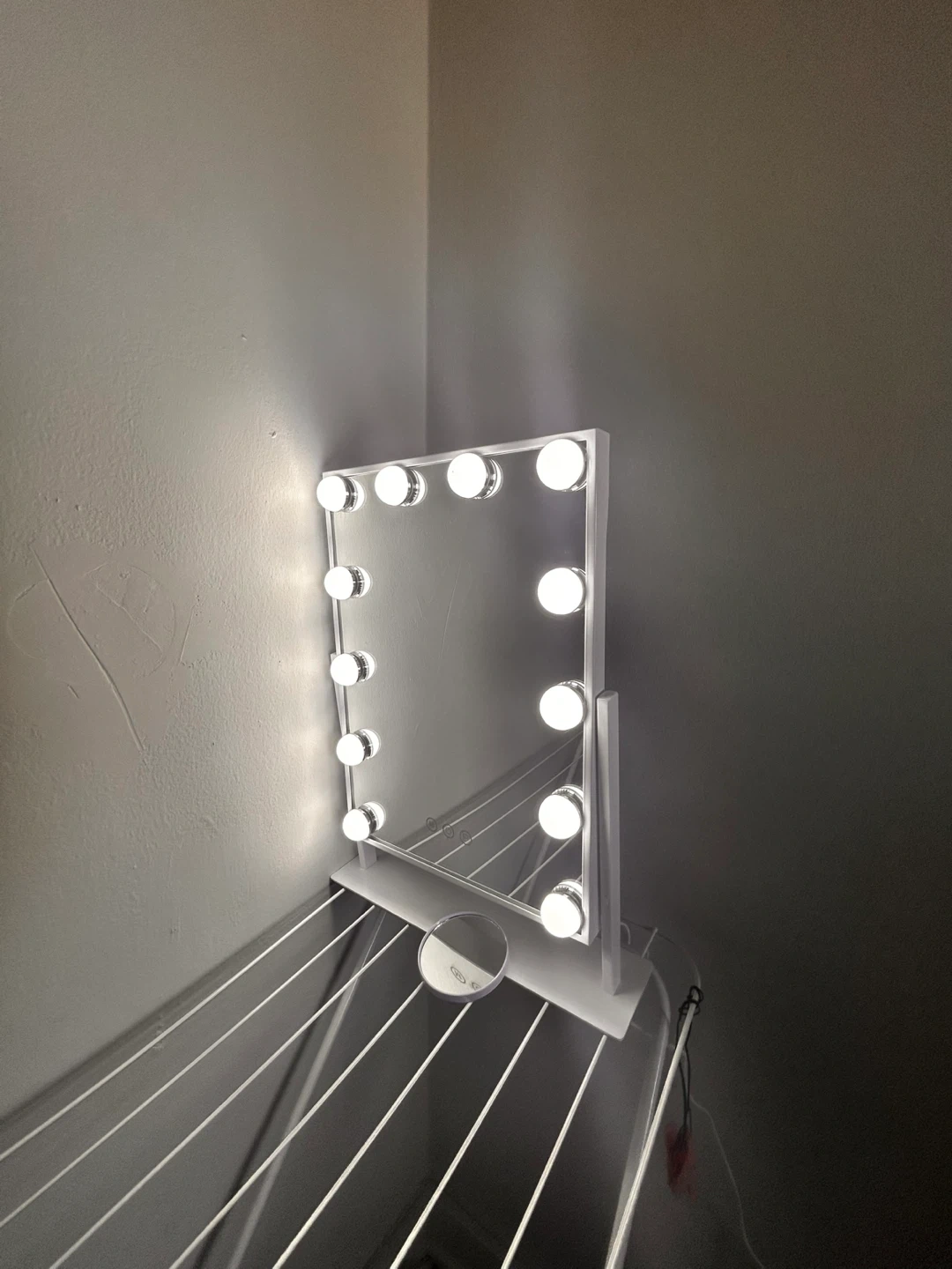This COOLJEEN Hollywood Makeup Mirror comes with 12 bulbs for bright, even lighting. It includes a free compact magnifier. Open box