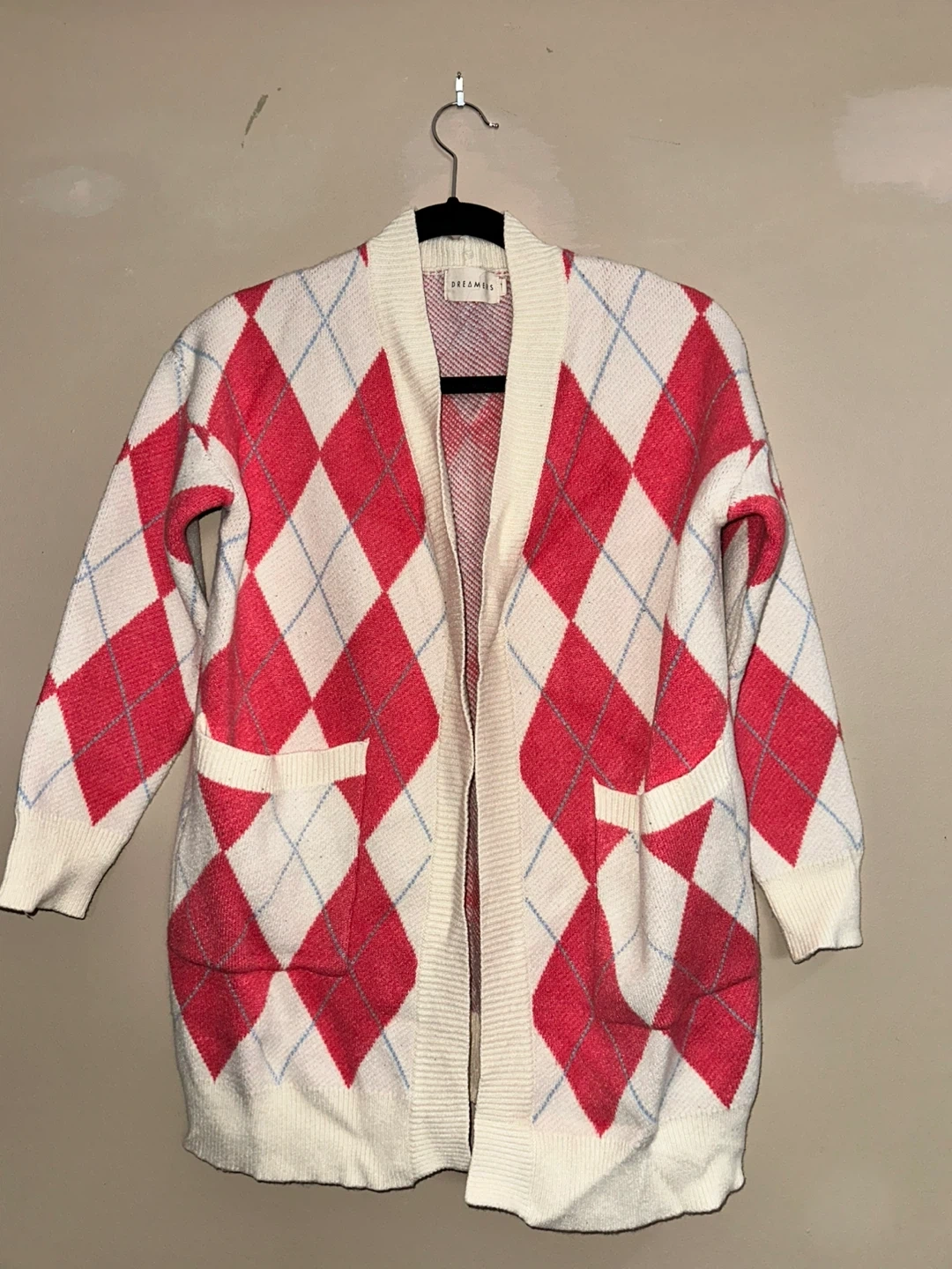 Buy & SellDreamers Cardigan - Pink Argyle SweaterDreamers Cardigan - Pink Argyle Sweater$14Dreamers cardigan featuring a classic pink and white argyle pattern. This open-front sweater has two front pockets. It's a size small.ConditionGoodSizeS-MBrandDreamersWHERE TO MEETEcole Good Shepherd SchoolView MapSELLERverifiedJoannaSuntree700 reviews0 chats·0 favorites·6 viewsSEND CHAT TO SELLERHi Joanna! I’m interested in your listing.Hi Joanna! I’m interested in your listing.Get the Karrot app to chatSign In to chat
