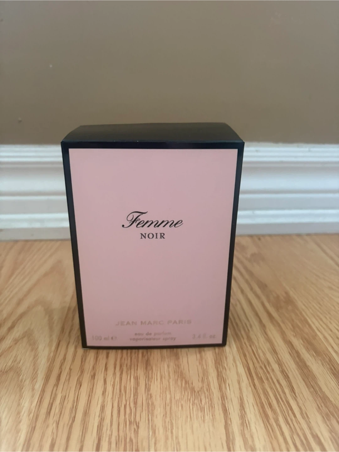 Jean Marc Paris Femme Noir Eau de Parfum. This is a 100ml bottle with a spray applicator. The fragrance comes in its original packaging.