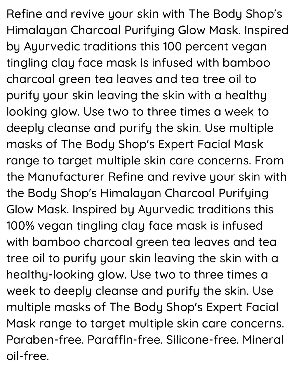 • Paraben-free, paraffin-free, silicone-free, mineral oil–free