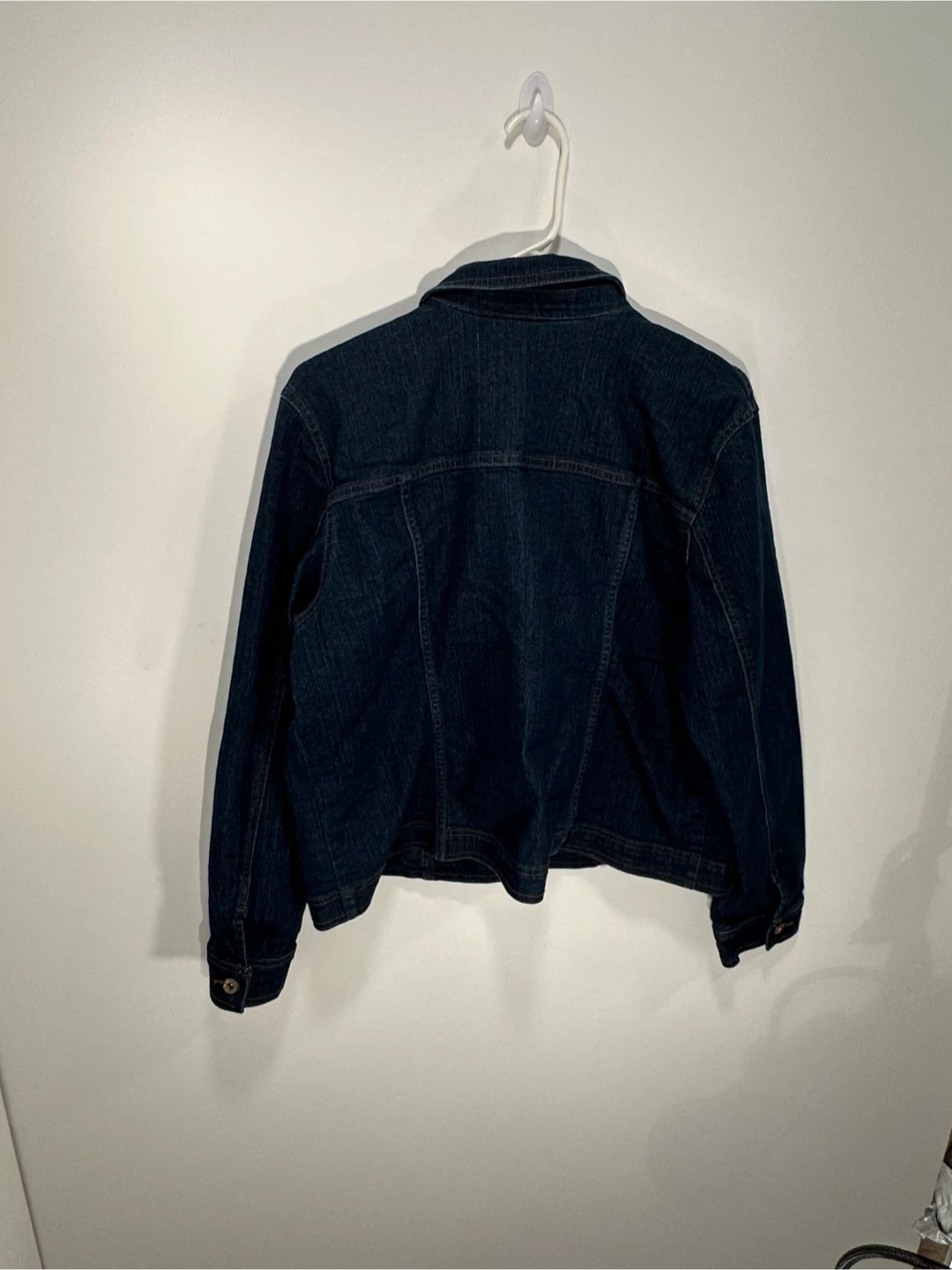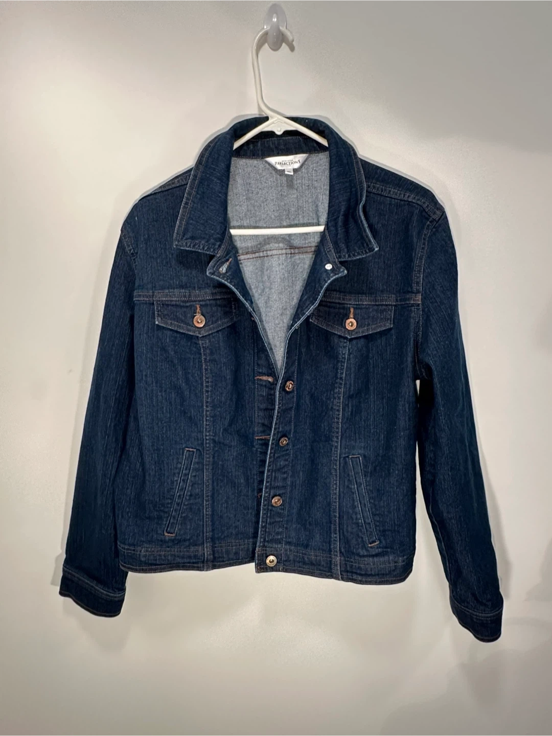 A classic dark wash denim jacket from Northern Reflections. It's a size XL with a button-up front and chest pockets. This jacket is perfect for layering on cooler days. It's made of durable denim.