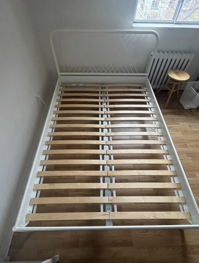 Clean metal double/full size bed. Nothing wrong with it. Currently disassembled for easy pickup. Mattress available for an extra $100. Smoke-free, bug-free, pet-free home. Self-pickup at Markham area (Kennedy & Steeles).