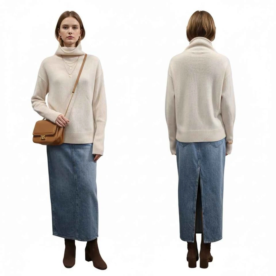 It's knit with our Luxe Cashmere — 100% Grade-A cashmere, coveted for its unparalleled softness and warmth. The finest available. Ribbed cuffs and hem, mock-neck. Extra soft and cozy, relaxed fit.