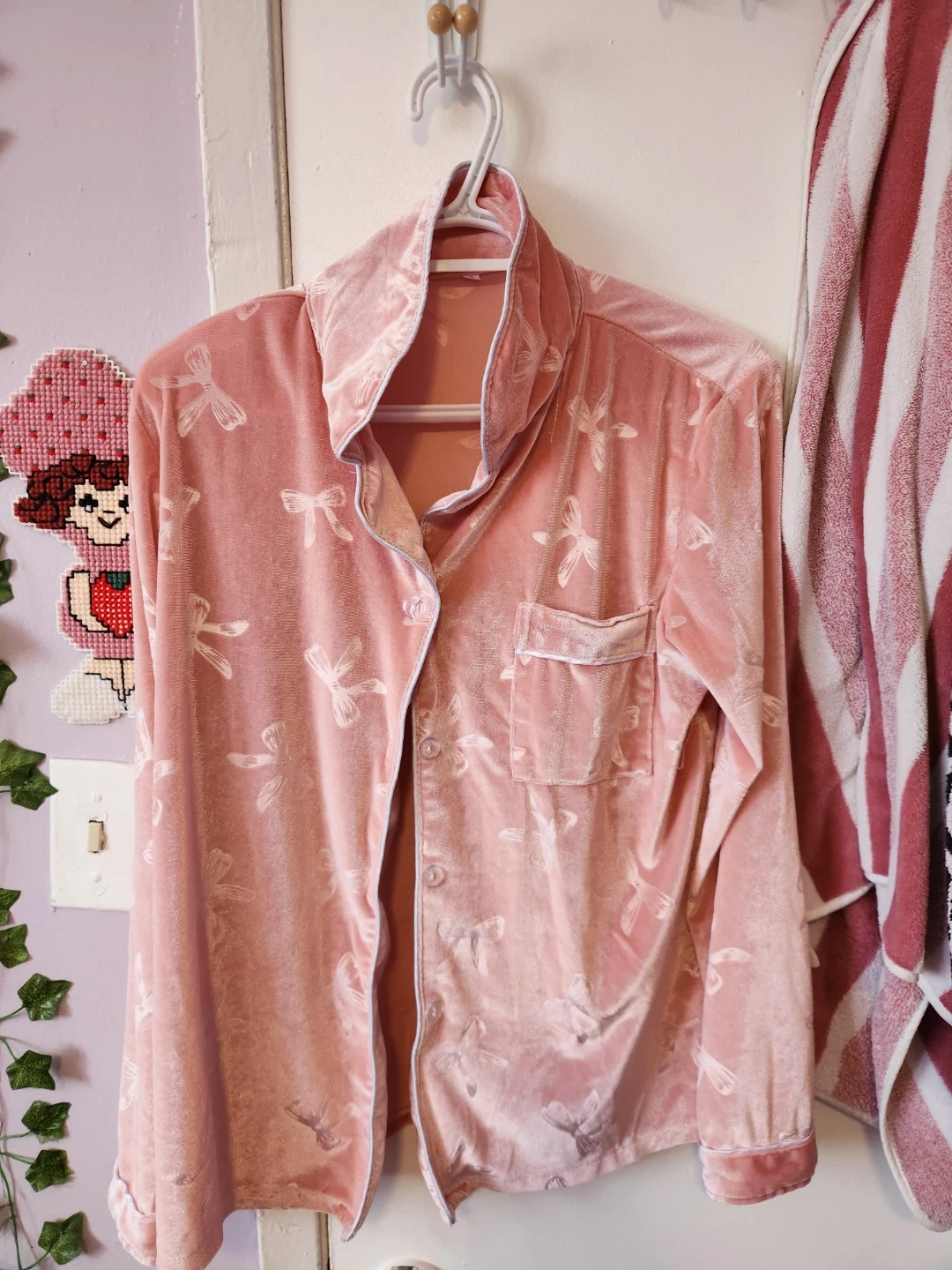 Light Pink Velvet Bow Pajama Set - Size Small🏆