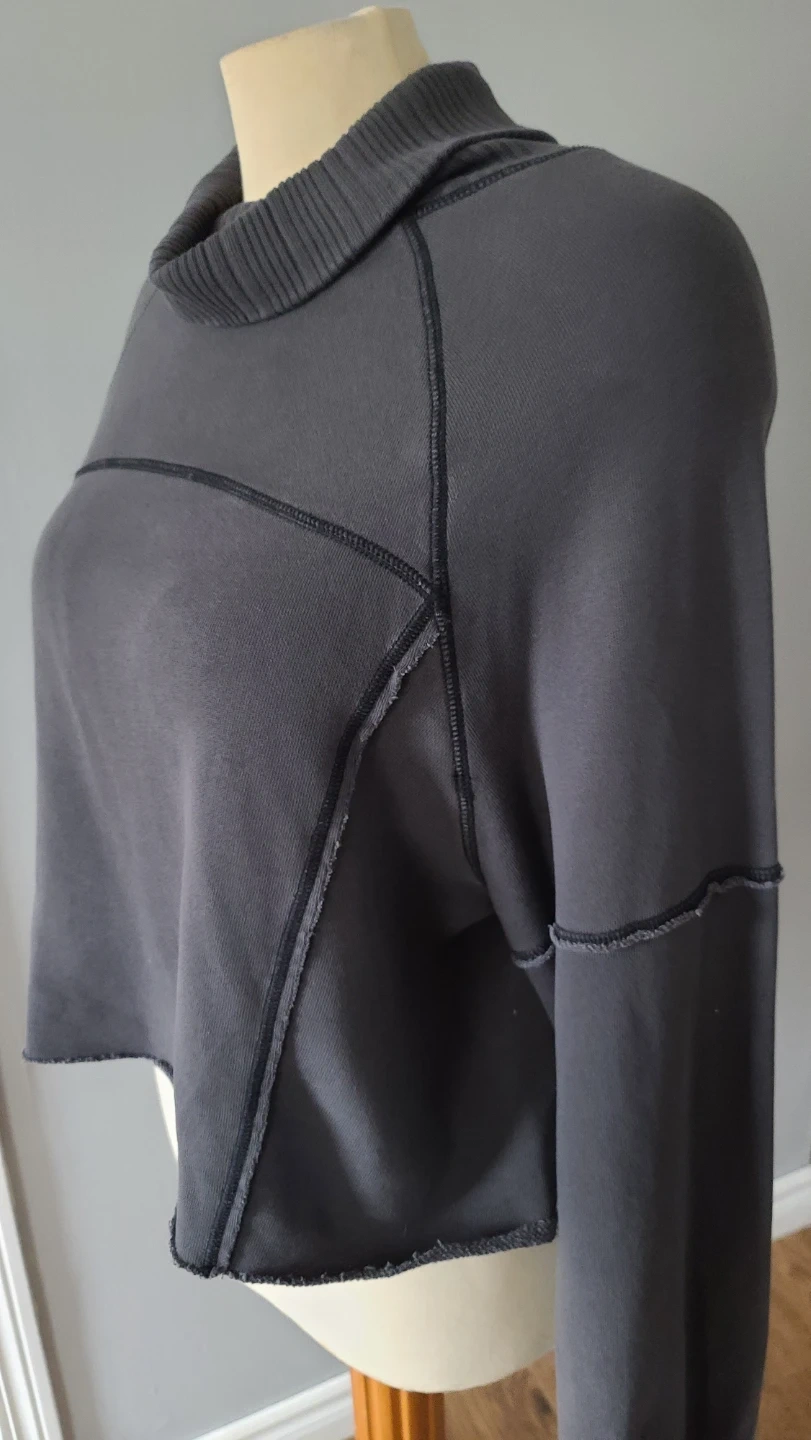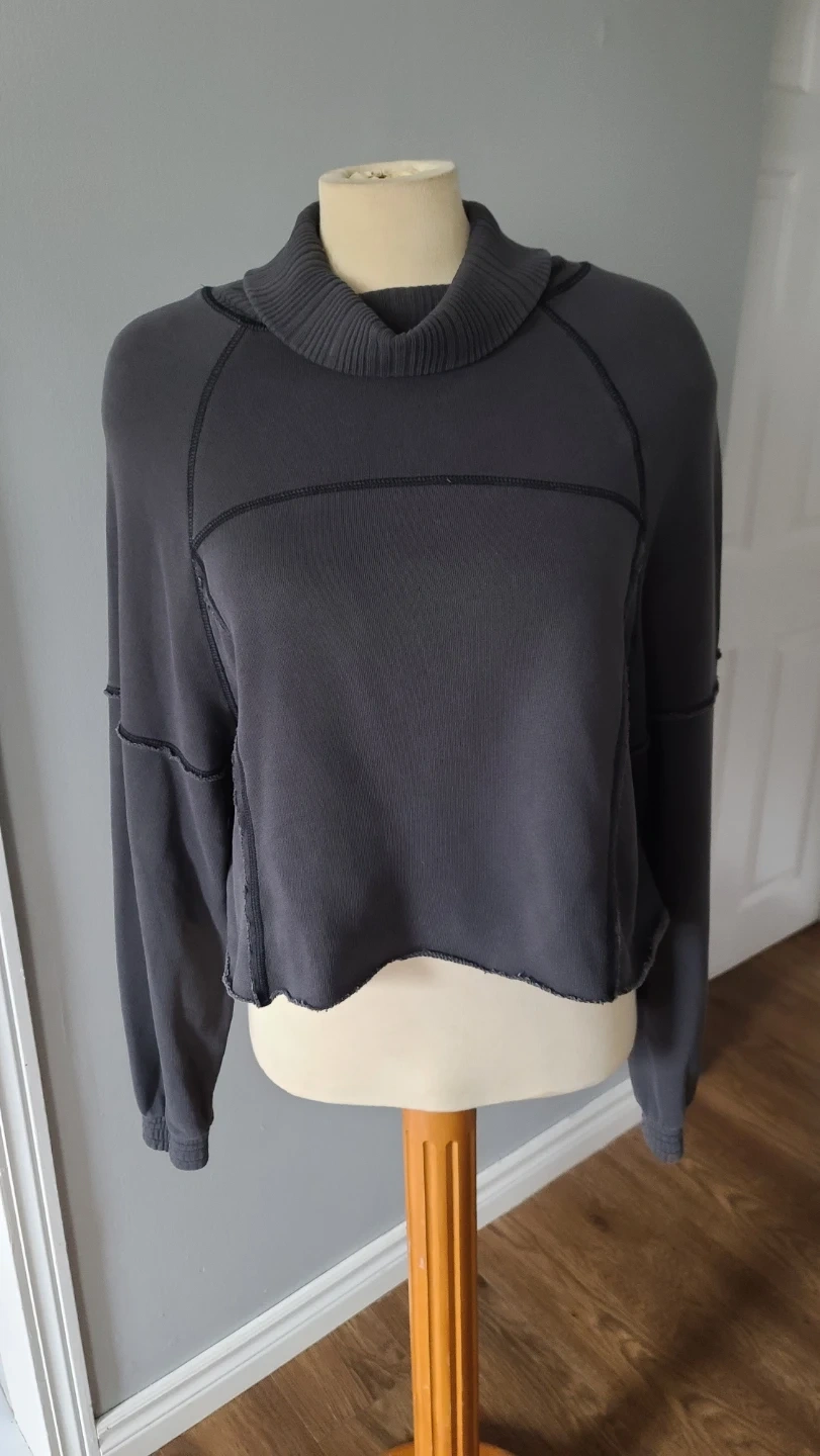 Selling this Aerie Buttercream cropped turtleneck sweater in black. It has an incredibly soft fleece lining and a relaxed, boxy fit with dropped shoulders. It is a very cozy staple that pairs perfectly with high-waisted leggings or jeans.
