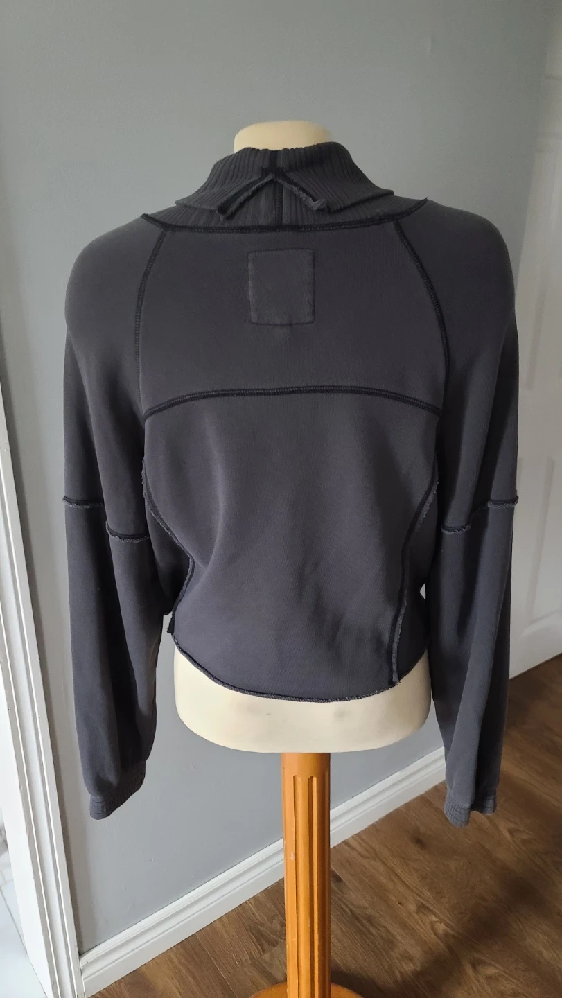 Selling this Aerie Buttercream cropped turtleneck sweater in black. It has an incredibly soft fleece lining and a relaxed, boxy fit with dropped shoulders. It is a very cozy staple that pairs perfectly with high-waisted leggings or jeans.