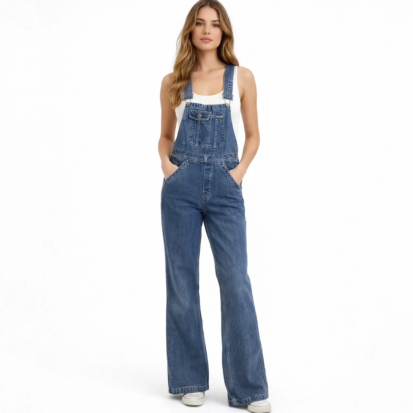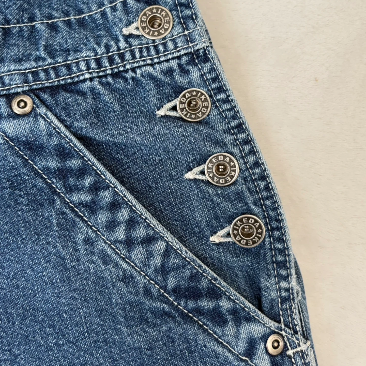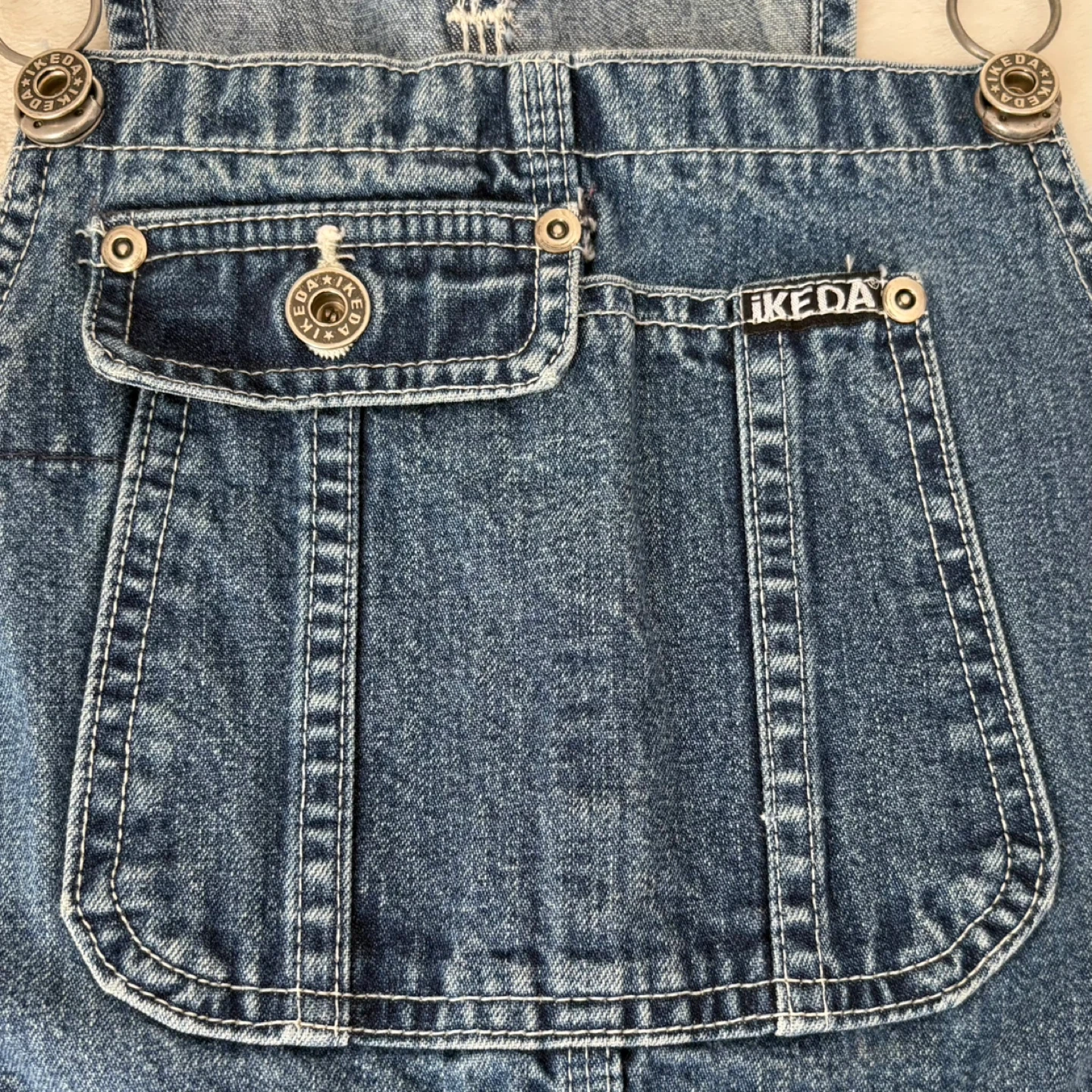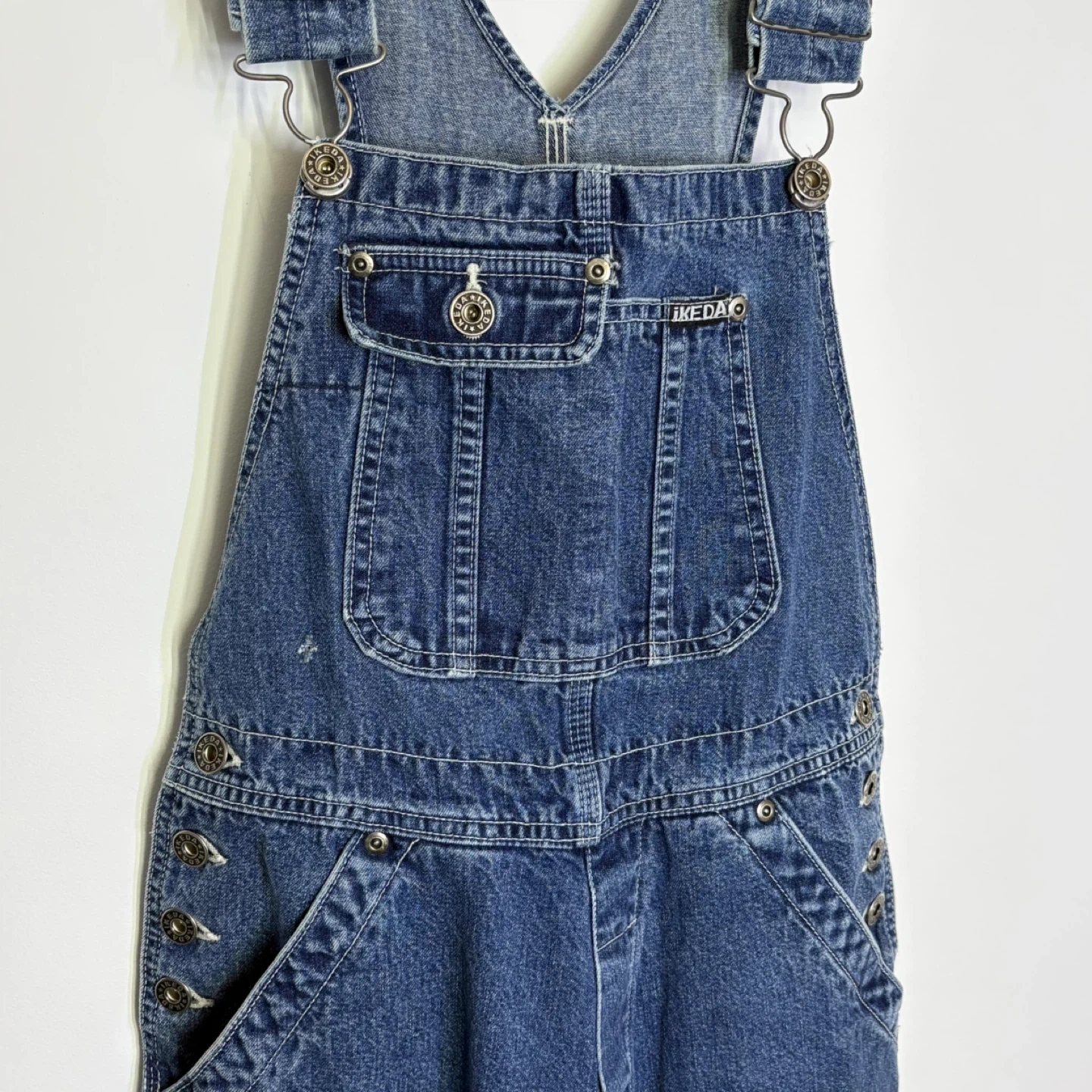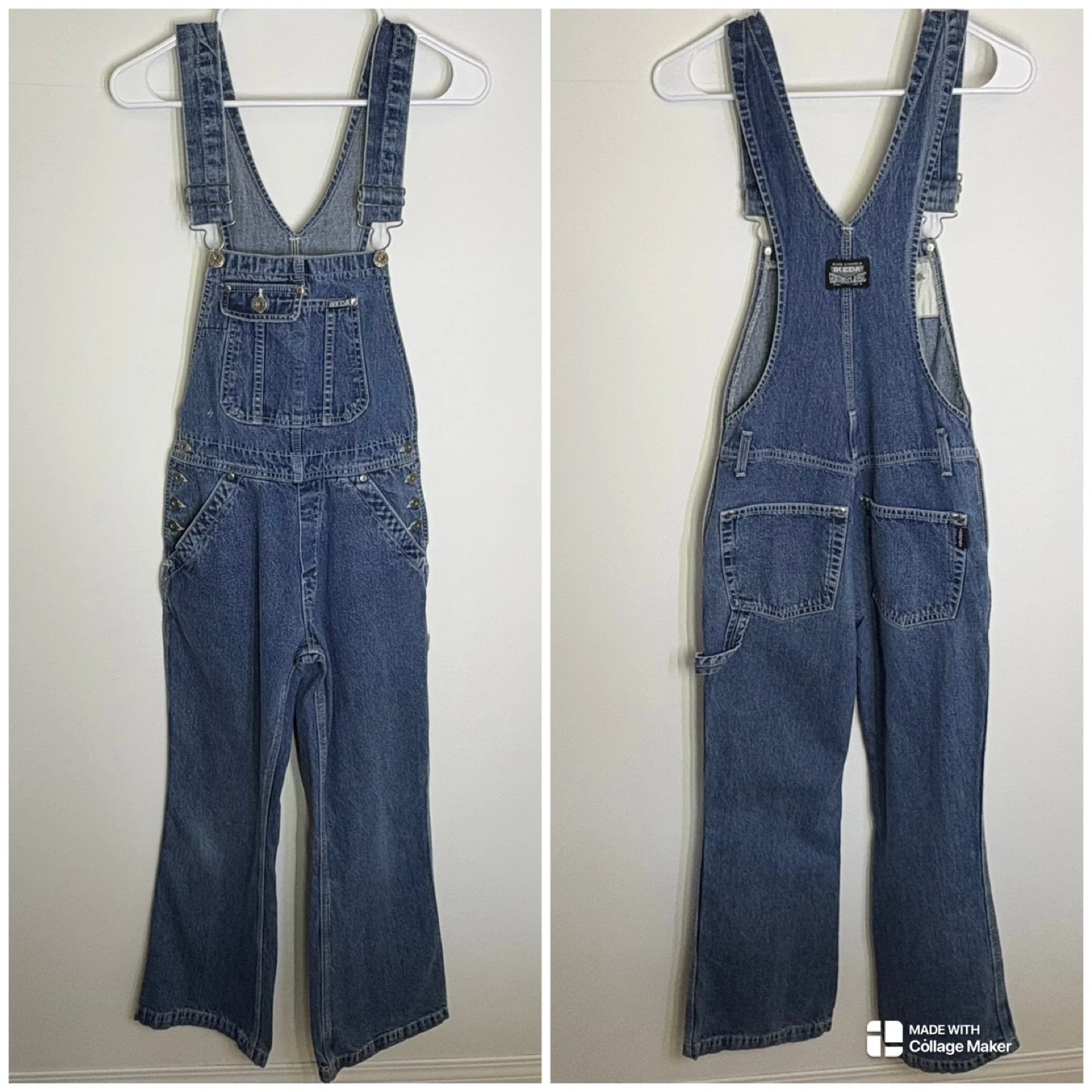 vintage Ikeda overalls, carpenter denim jumpsuits, bootcut overalls, Y2K utility pants, 90s streetwear, cotton denim, workwear chic, Ikeda jeans, oversized bib overalls, wide leg denim