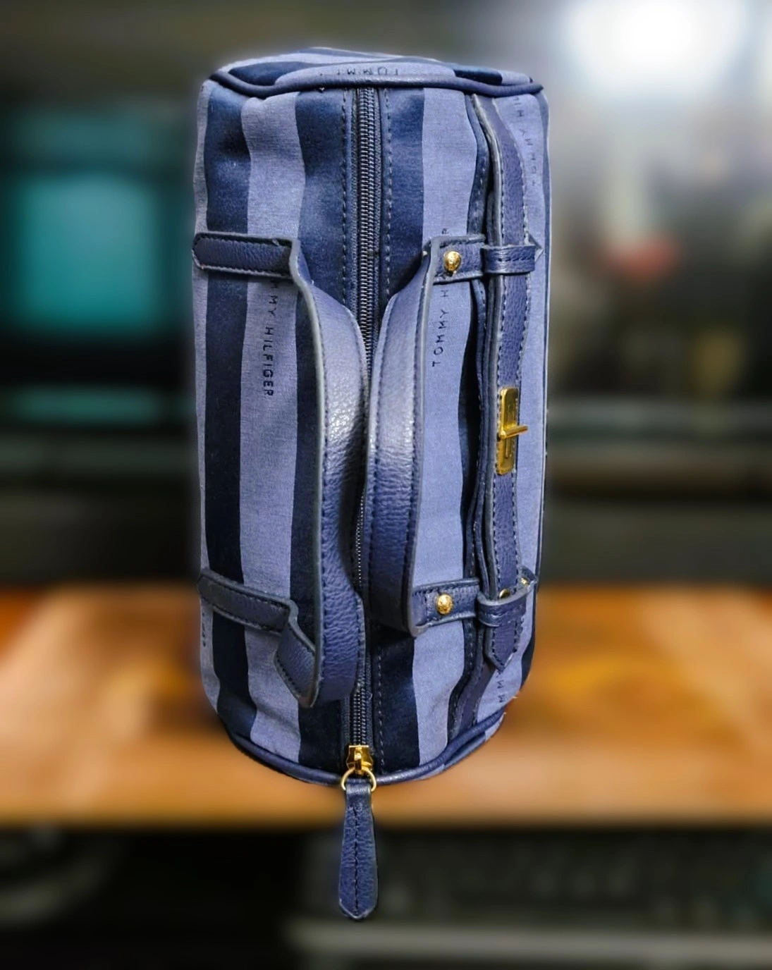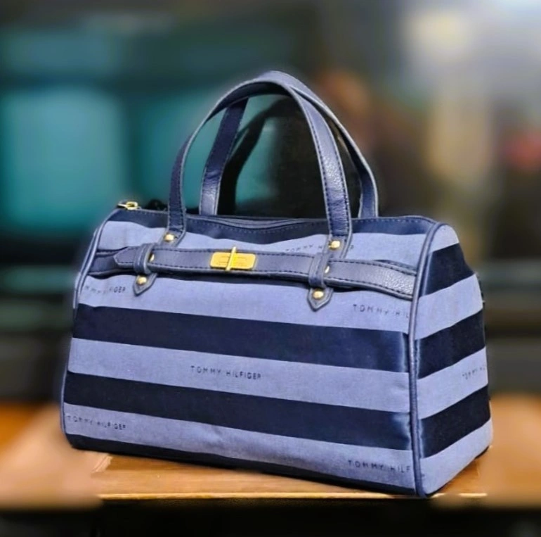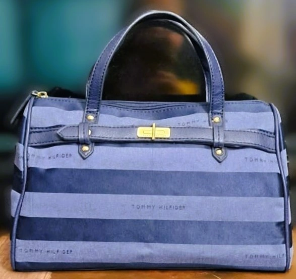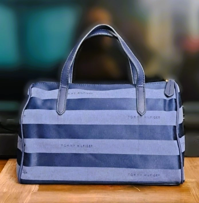 Tommy Hilfiger Blue Striped Canvas Satchel Handbag