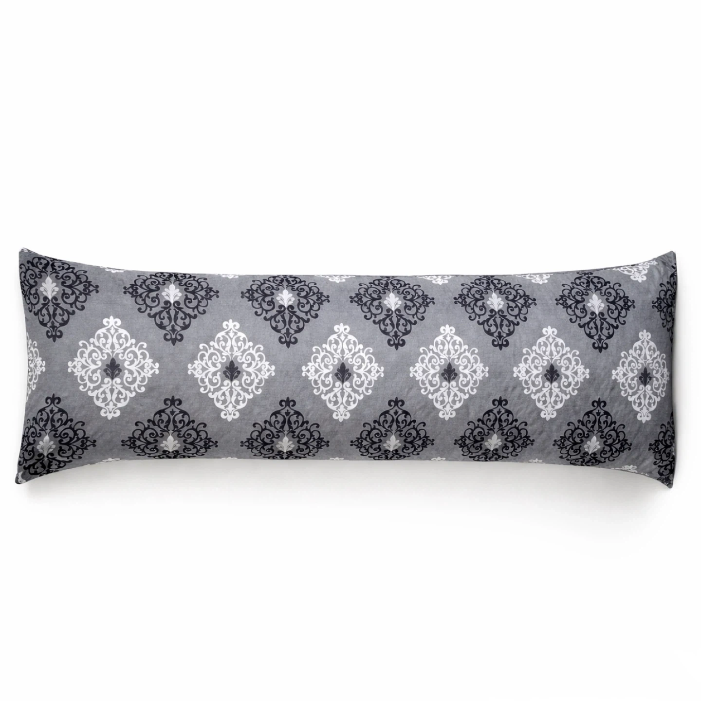 Add a touch of classic elegance to your bedding with this soft microfiber body pillow case. Featuring a timeless grey, black, and white damask scroll pattern, this cover is designed for both style and comfort.