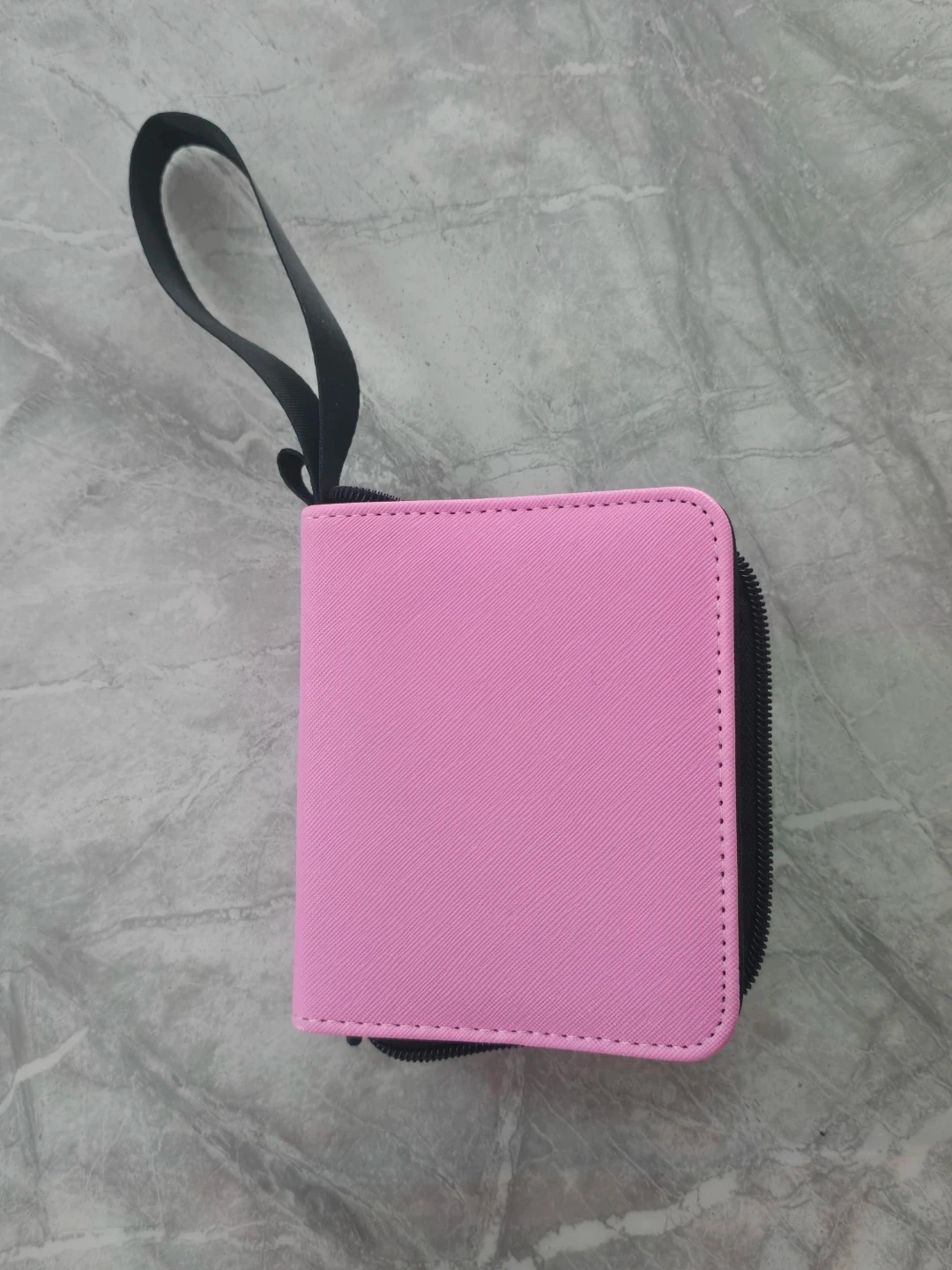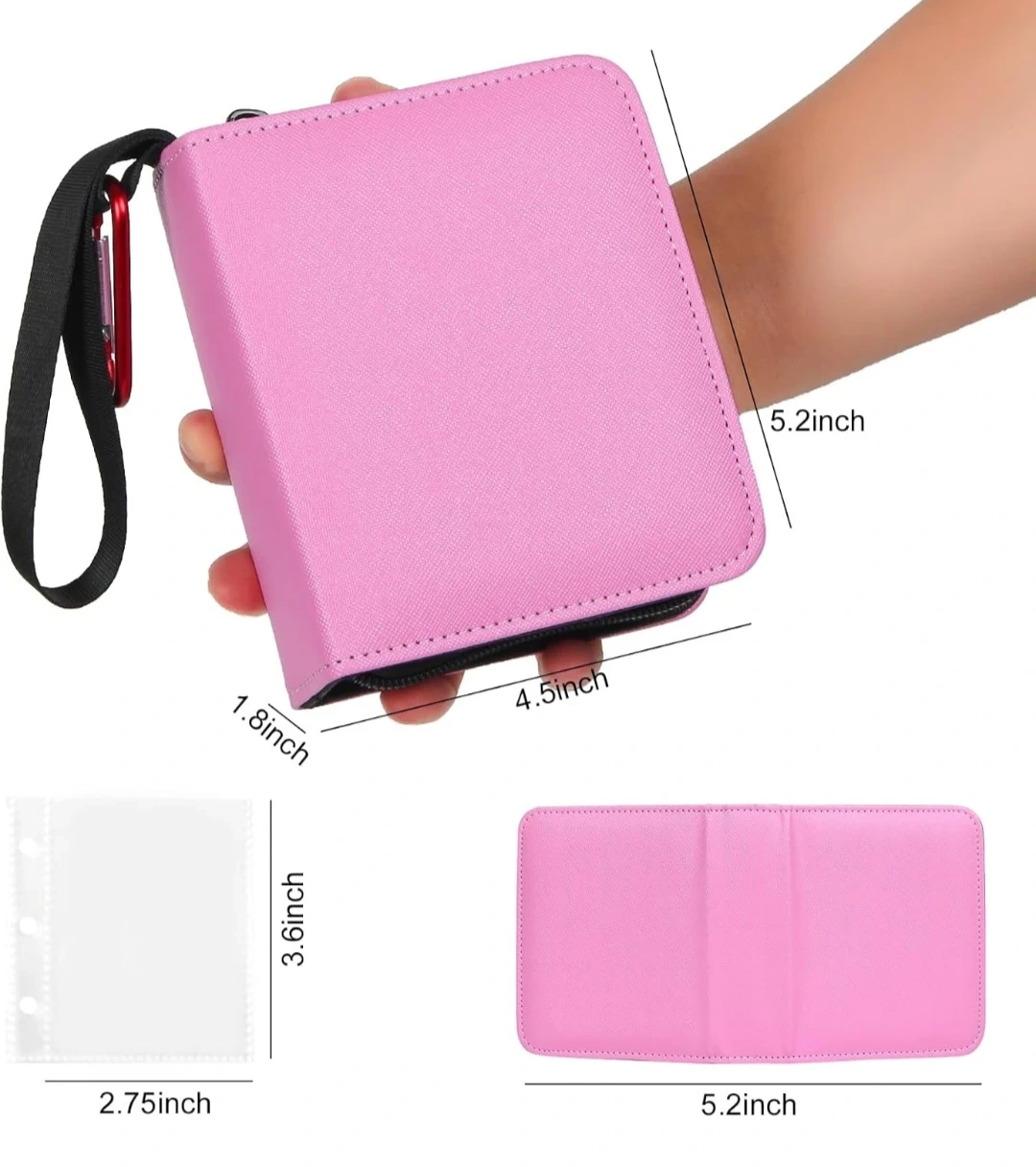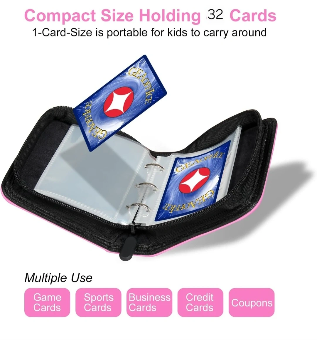 Compact card binder album, perfect for holding up to 32 cards. It features a high-quality 3-ring binder with easy-to-open rings and top-loading pockets. The flipping page design offers high transparency for displaying your cards.