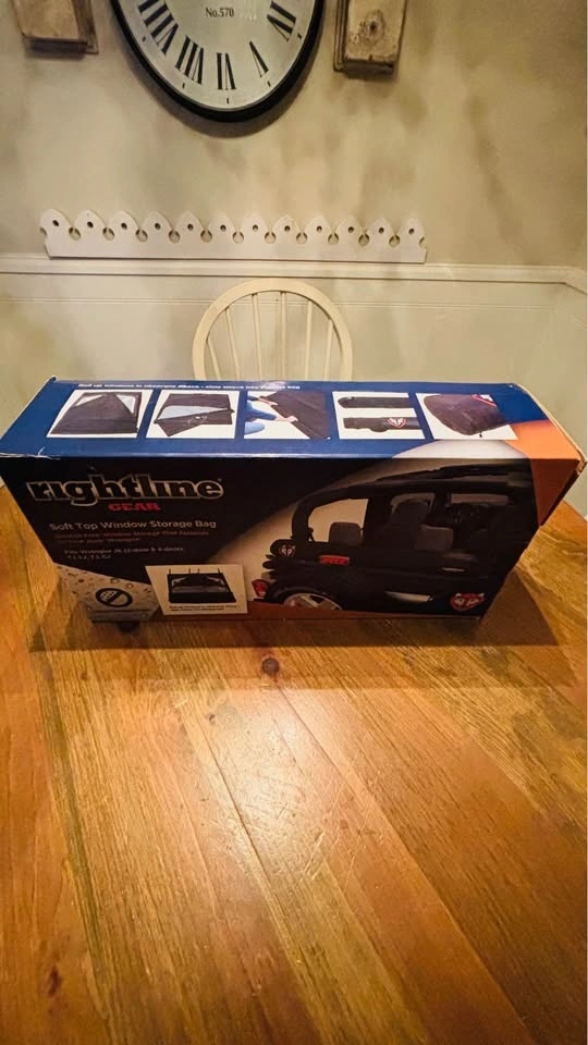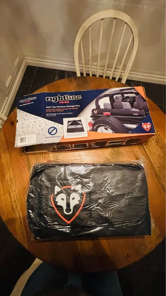 Brand new in box, still plastic wrapped from the factory and has never been used. Scratch-free window storage that attaches to your Jeep Wrangler! The Rightline Gear Soft Top Window Storage Bag holds (3) windows inside individual pockets of the neoprene window sleeve. The neoprene sleeve is nonabrasive, highly protective, water resistant, and does not pick up dirt, lint, or other debris from the ground. The sleeve is rolled up, quick release buckled tight, and slid inside the Window Storage Bag. The rear window bar provides structure for the bag, keeping it from sagging or flapping in the wind. The Soft Top Window Storage Bag is made from tough PVC Coated Mesh that is re-enforced for strength and UV protected. Dimensions: 55 L x 6.5 D. Weatherproof with welded seams and a urethane coated zipper. Fits: Wrangler JK (2-door & 4-door), TJ, LJ, YJ, CJ. Straps to the roll bars, behind the rear seat headrests, or behind the front seat headrests, top up or top down. Color: Black. Includes: bag, neoprene window sleeve, and set up guide.