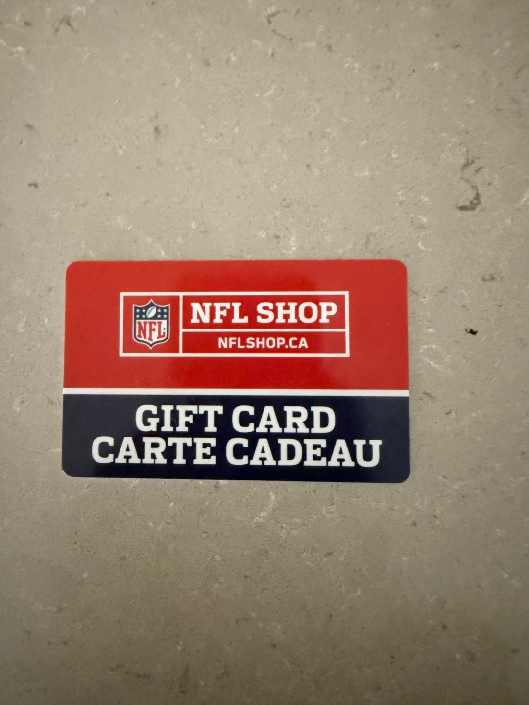 NFL Shop gift card with a balance of $250. Redeemable online at NFLshop.ca. Perfect for any NFL fan looking to grab some gear especially the week of the Superbowl!!