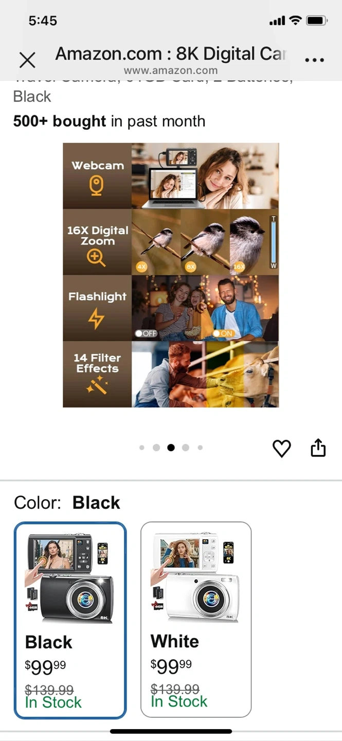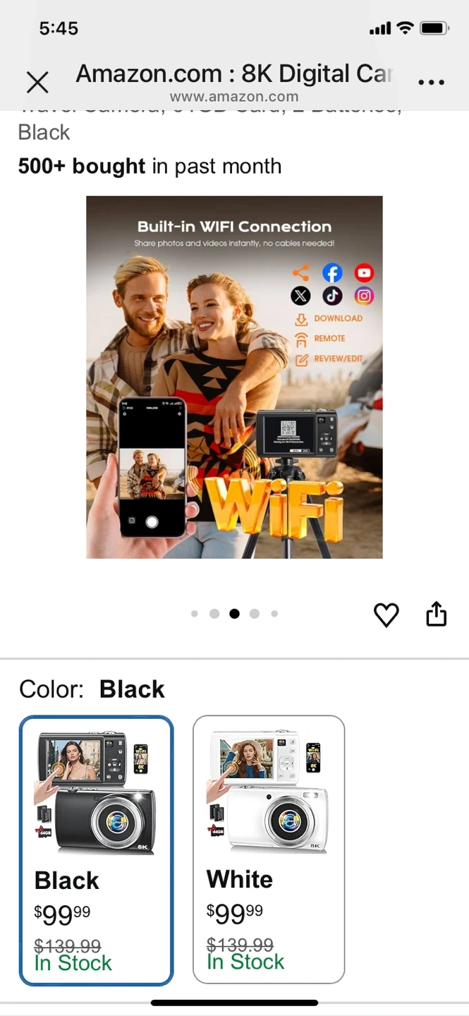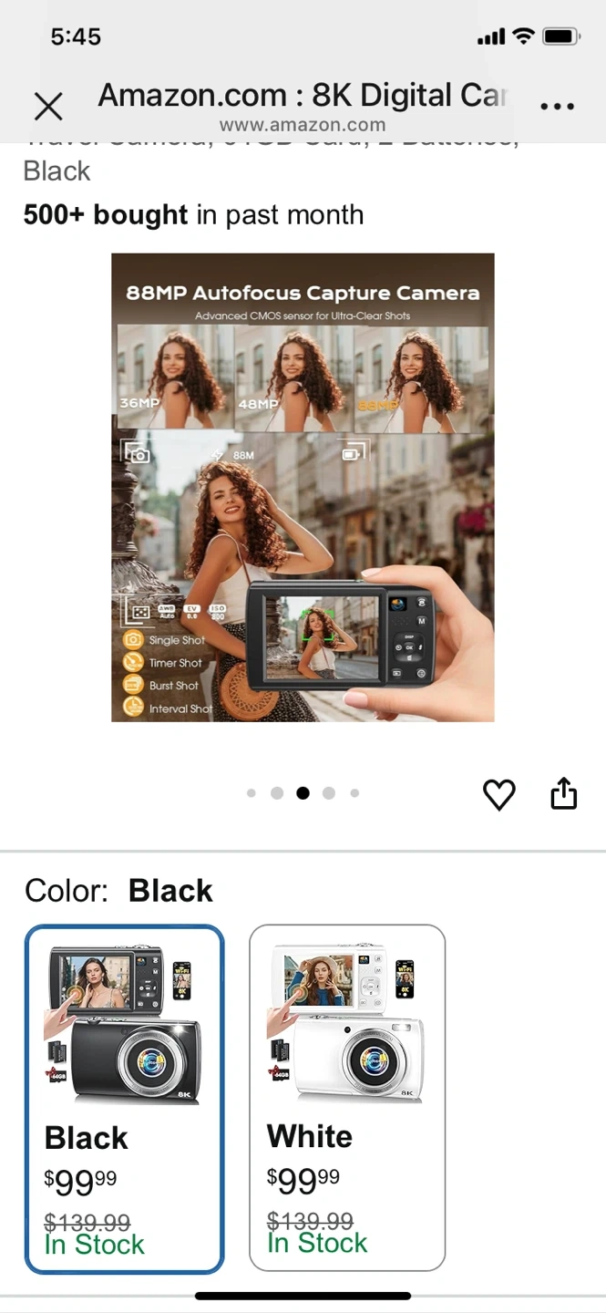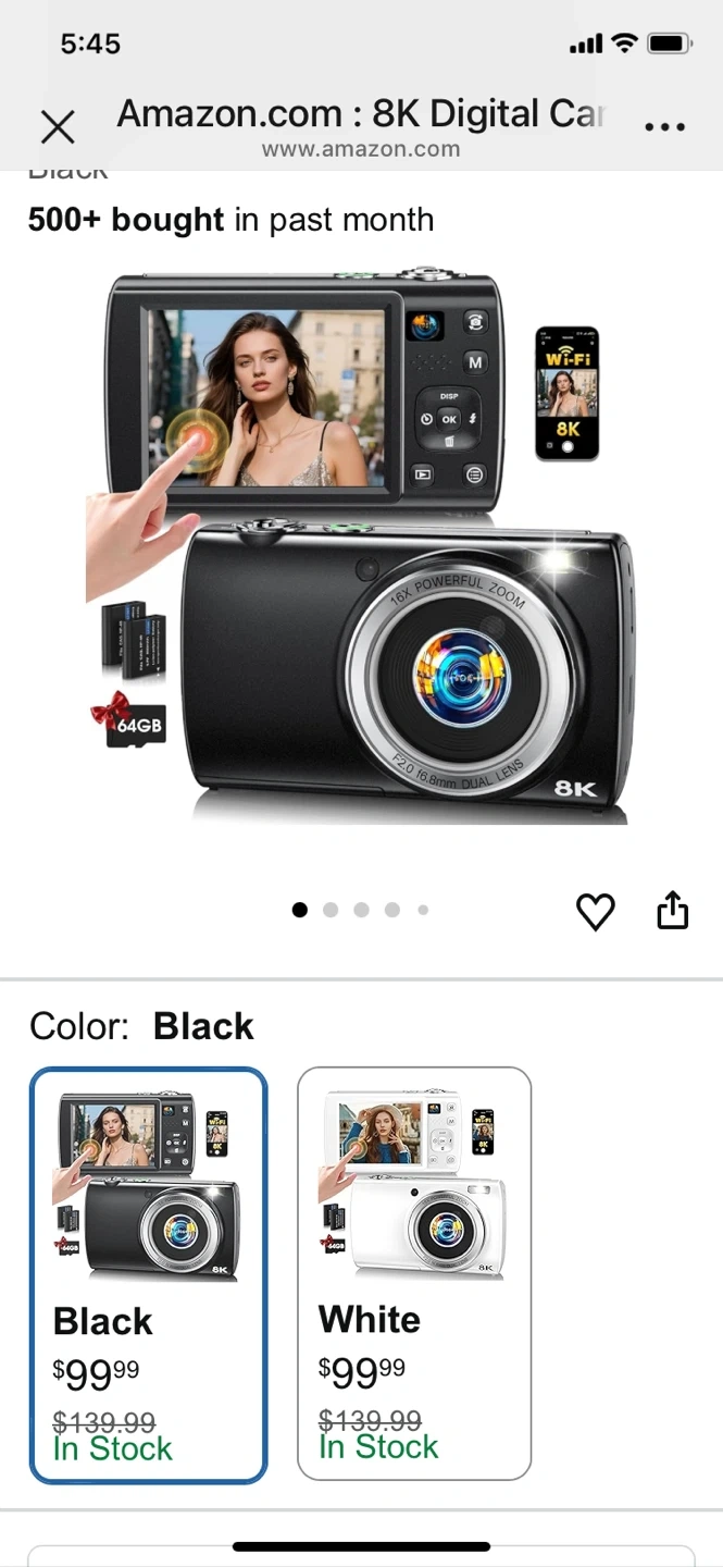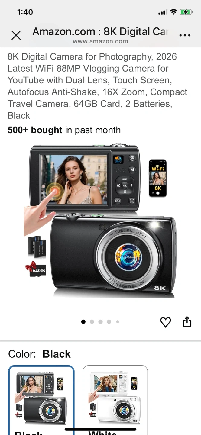 This is an 8K digital camera with 16x digital zoom and WiFi connectivity. It features a 2.8-inch IPS touch screen and 88MP autofocus capture shots. Includes a 64GB memory card.