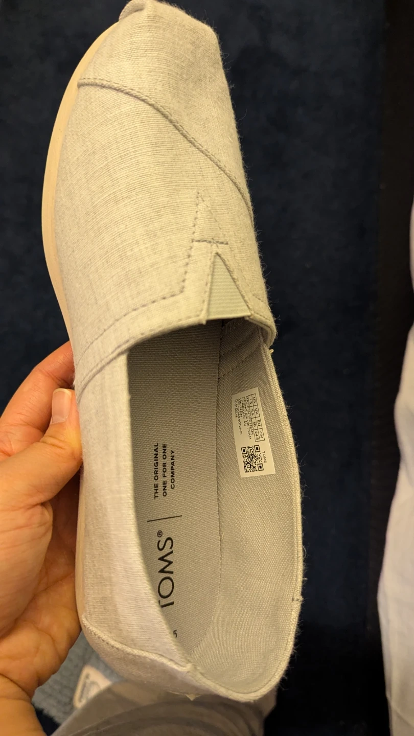 Brand New TOMS Women's Alpargata slip-on shoes in very stylish and easy to match grey-blue (colour: Drizzle Grey Slub Chambray). These shoes feature Ortholite comfort foam insoles. Size is 7.5.