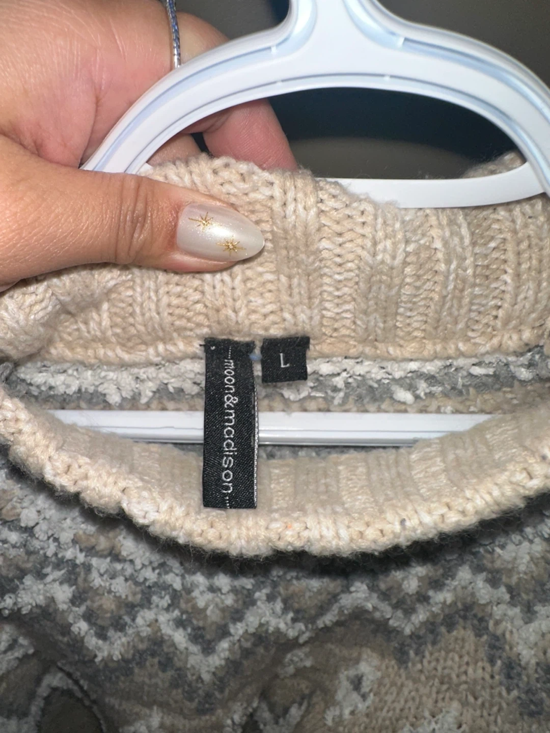 Buy & SellMoon & Madison Fair Isle Sweater - Size LMoon & Madison Fair Isle Sweater - Size L$7Cozy knit sweater from Moon & Madison. Features a classic Fair Isle pattern with a mock neck. Size is Large.ConditionOkaySizeLargeBrandMoon & MadisonWHERE TO MEETEcole Good Shepherd SchoolView MapSELLERverifiedJoannaSuntree700 reviews0 chats·0 favorites·1 viewsSEND CHAT TO SELLERHi Joanna! I’m interested in your listing.Hi Joanna! I’m interested in your listing.Get the Karrot app to chatSign In to chat