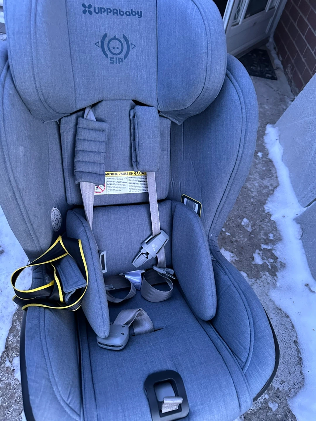 This UPPAbaby convertible car seat is made with a durable fabric. It's designed for rear-facing and forward-facing use. The seat includes SIP (Side Impact Protection) for added safety. This car seat is suitable for infants and toddlers.
