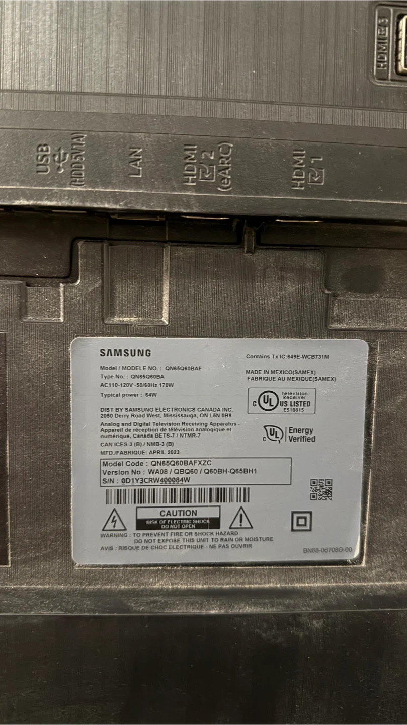 Selling two Samsung QN65Q60BAF TVs for parts or as-is: