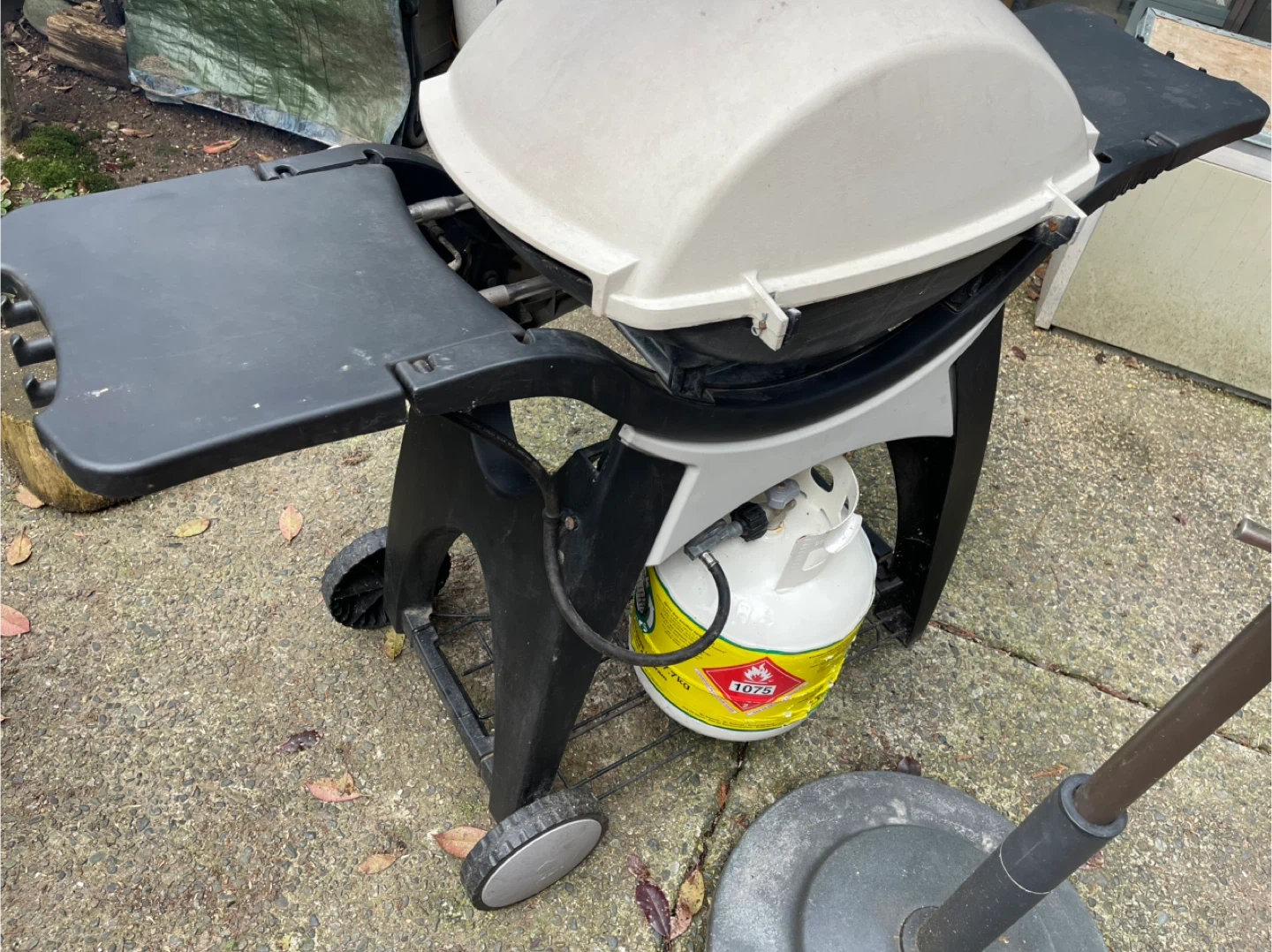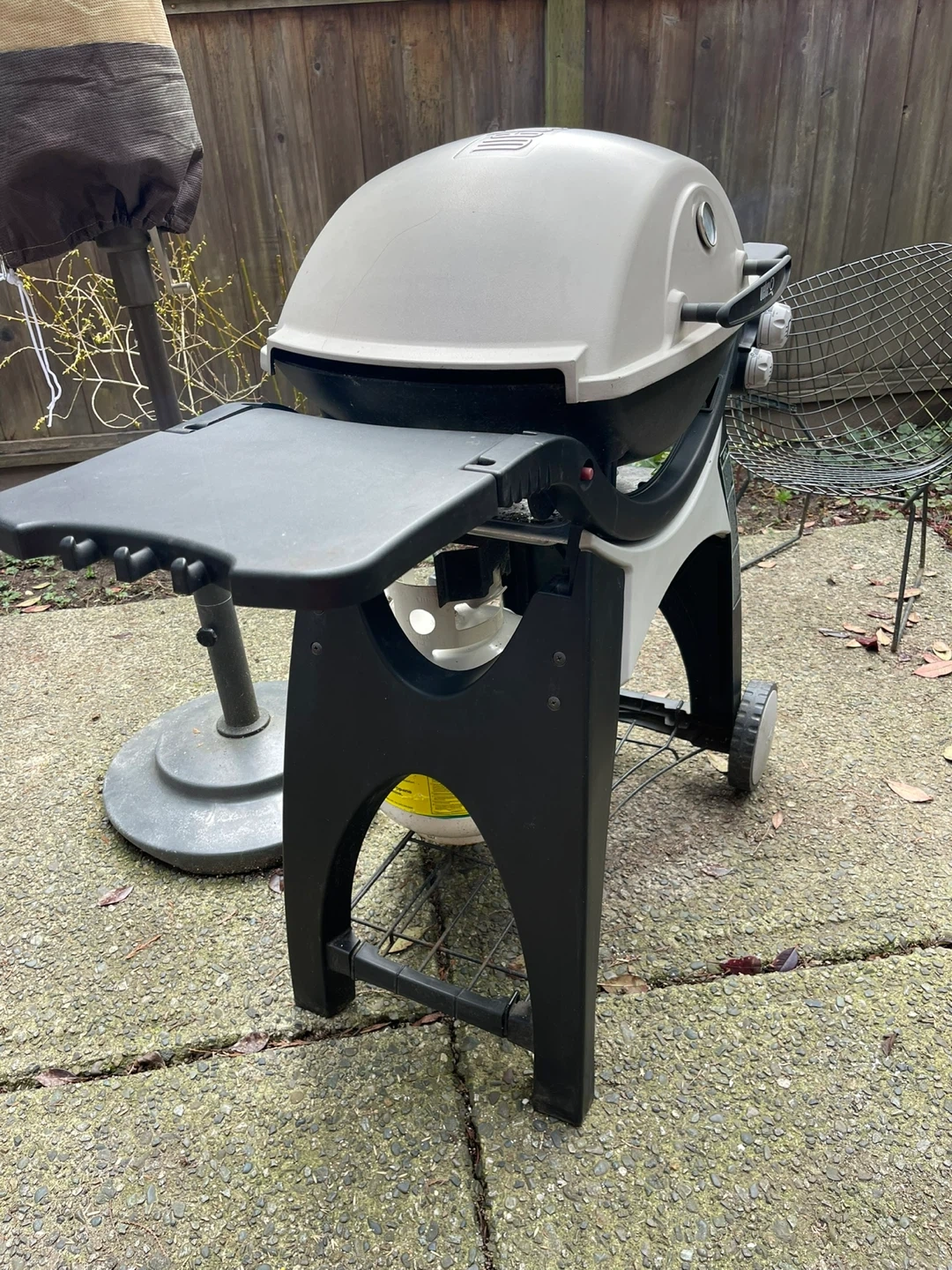 This is a gas Weber Q 3200 gas Barbeque with stand.