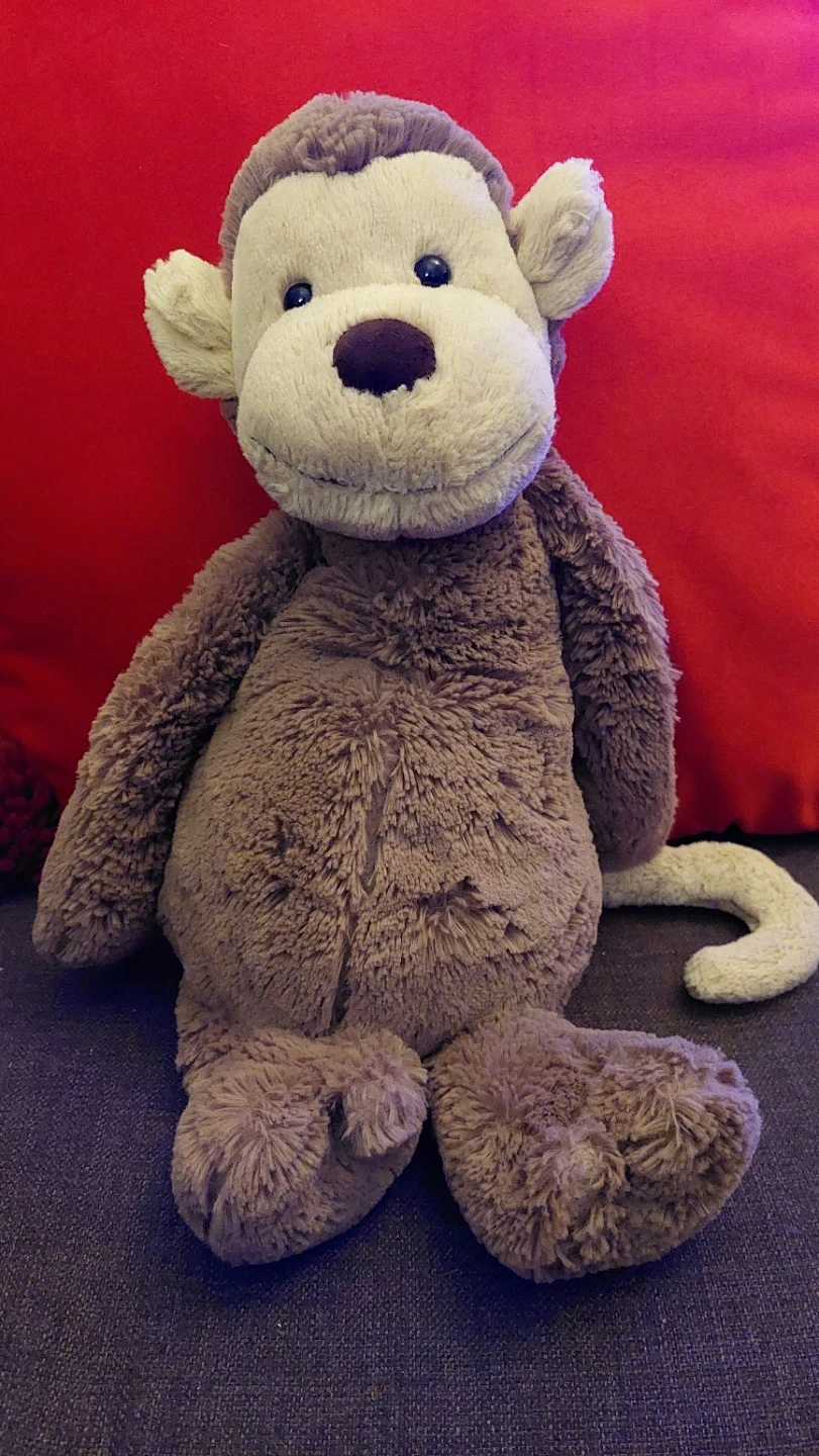 This Jellycat Bashful Monkey 15" is a soft and cuddly stuffed animal. It's made with plush material and has a friendly face. Perfect for little ones who love to play and cuddle! No hang tags but has regular tags.
