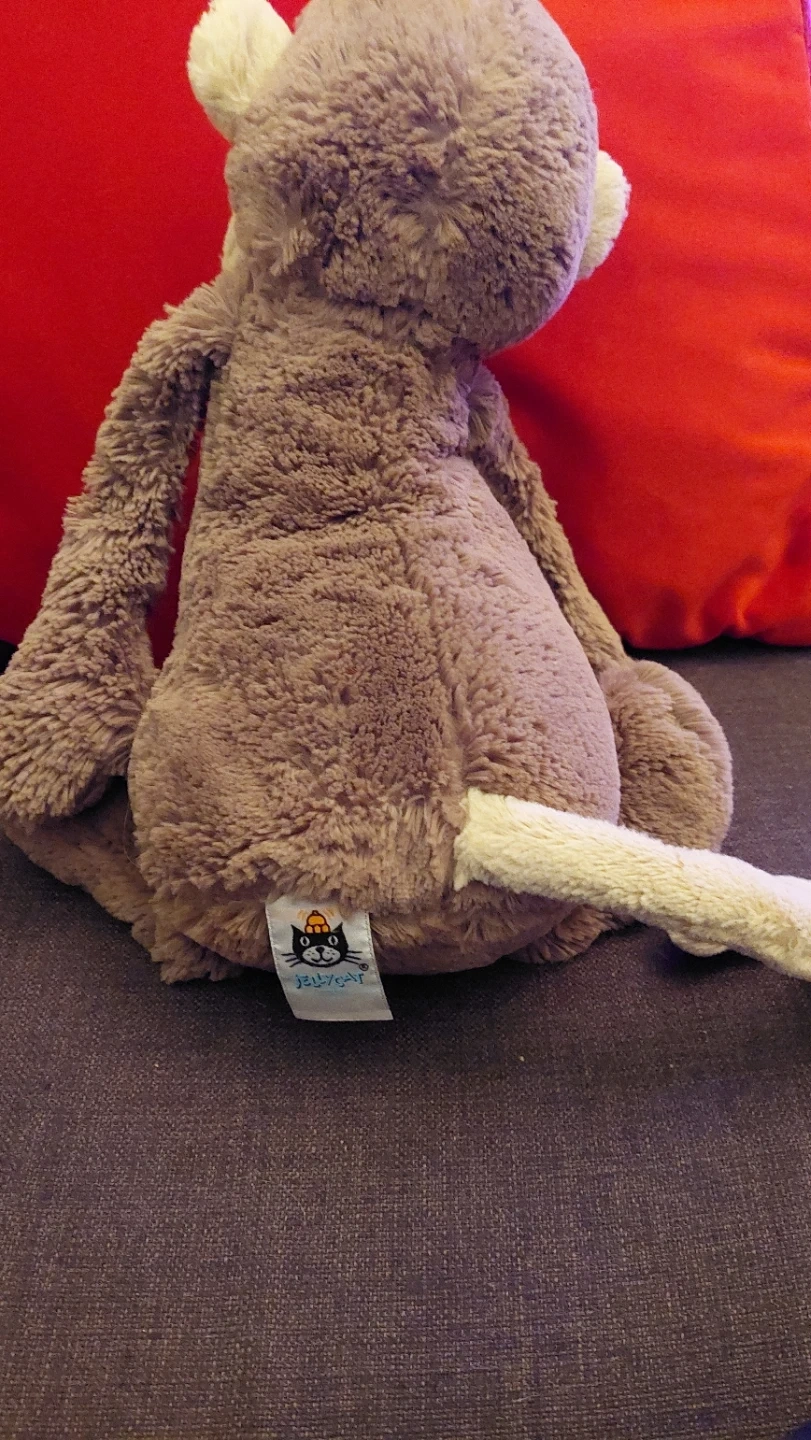 This Jellycat Bashful Monkey 15" is a soft and cuddly stuffed animal. It's made with plush material and has a friendly face. Perfect for little ones who love to play and cuddle! No hang tags but has regular tags.