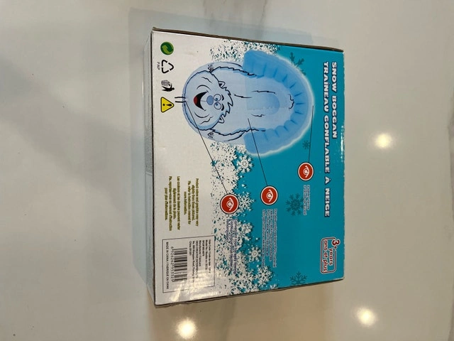 New Snow Zone Snow Boggan, perfect for winter fun! This inflatable snow sled is designed for children aged 3 years and up, offering a safe and enjoyable ride down snowy hills. The boggan measures 35" x 22". Key Features: Inflatable design for comfortable and cushioned rides. Suitable for children ages 3+. Size: 25 x 22 inches. Cash accepted.