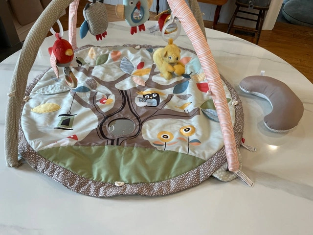 Get your little one moving and exploring with this gently used Skip Hop activity gym, featuring a charming tree design and adorable hanging toys. It's in good condition and ready for its next adventure! This interactive gym helps develop motor skills with its engaging toys and textures. Features: Soft mat with engaging flaps and textures, multiple hanging toys, support pillow included, removable mirror for easy machine washing. Condition: Used - Good. Payment: Cashless payment, Cash accepted.