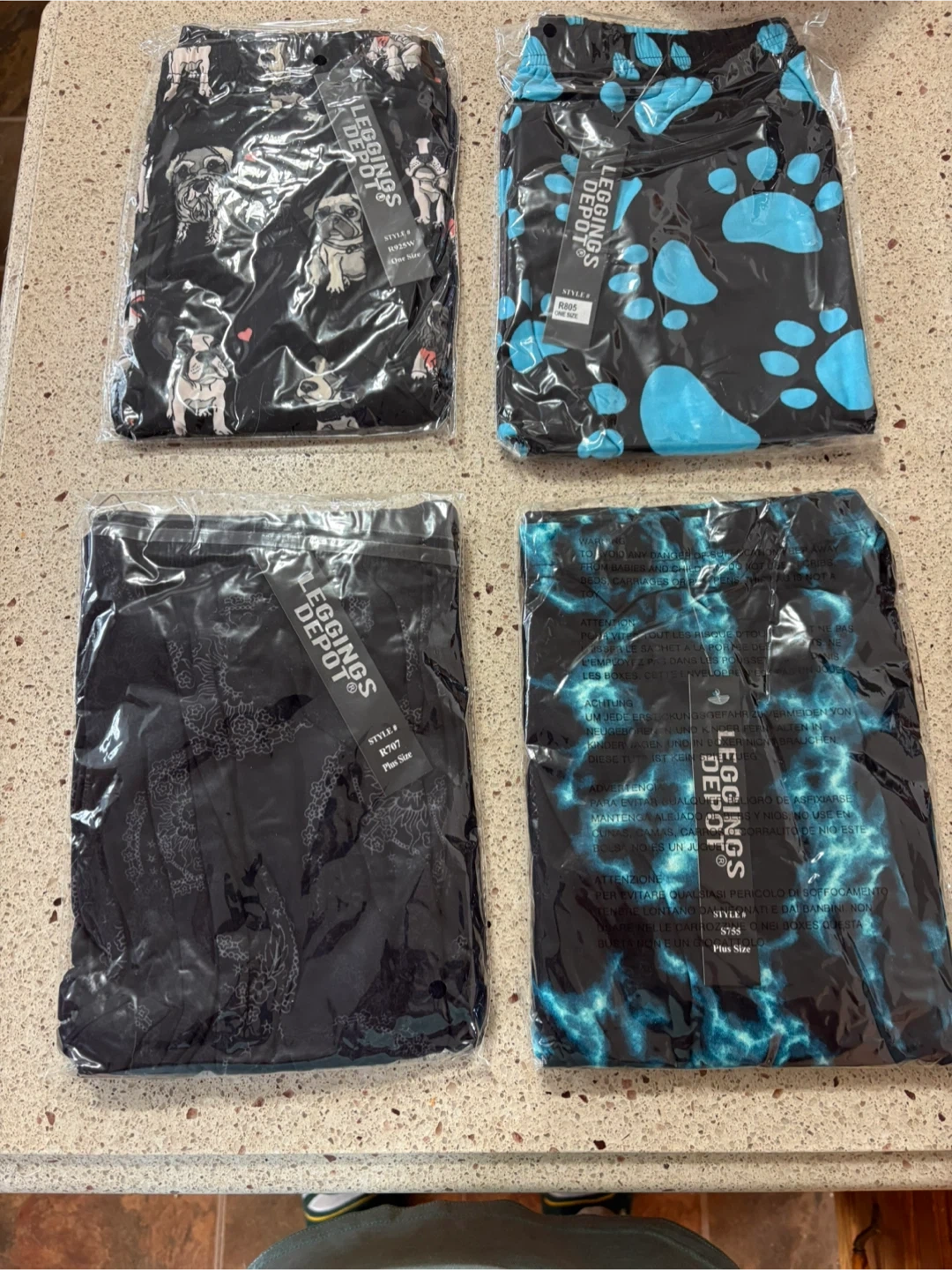 These comfortable leggings come in various fun prints, including dogs, tie-dye, paw prints, and floral patterns. They're designed for everyday wear. Available in one size and plus size options.