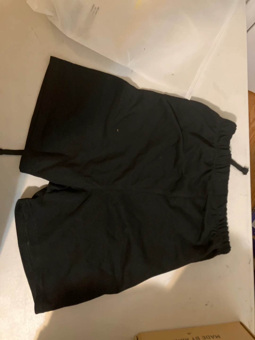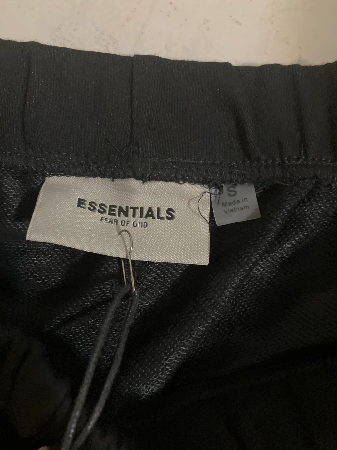 Black Essentials-style shorts in size small. These are replicas and not top-tier quality, but still decent for everyday wear. Made from a cotton & polyester blend, so they’re comfortable and lightweight.