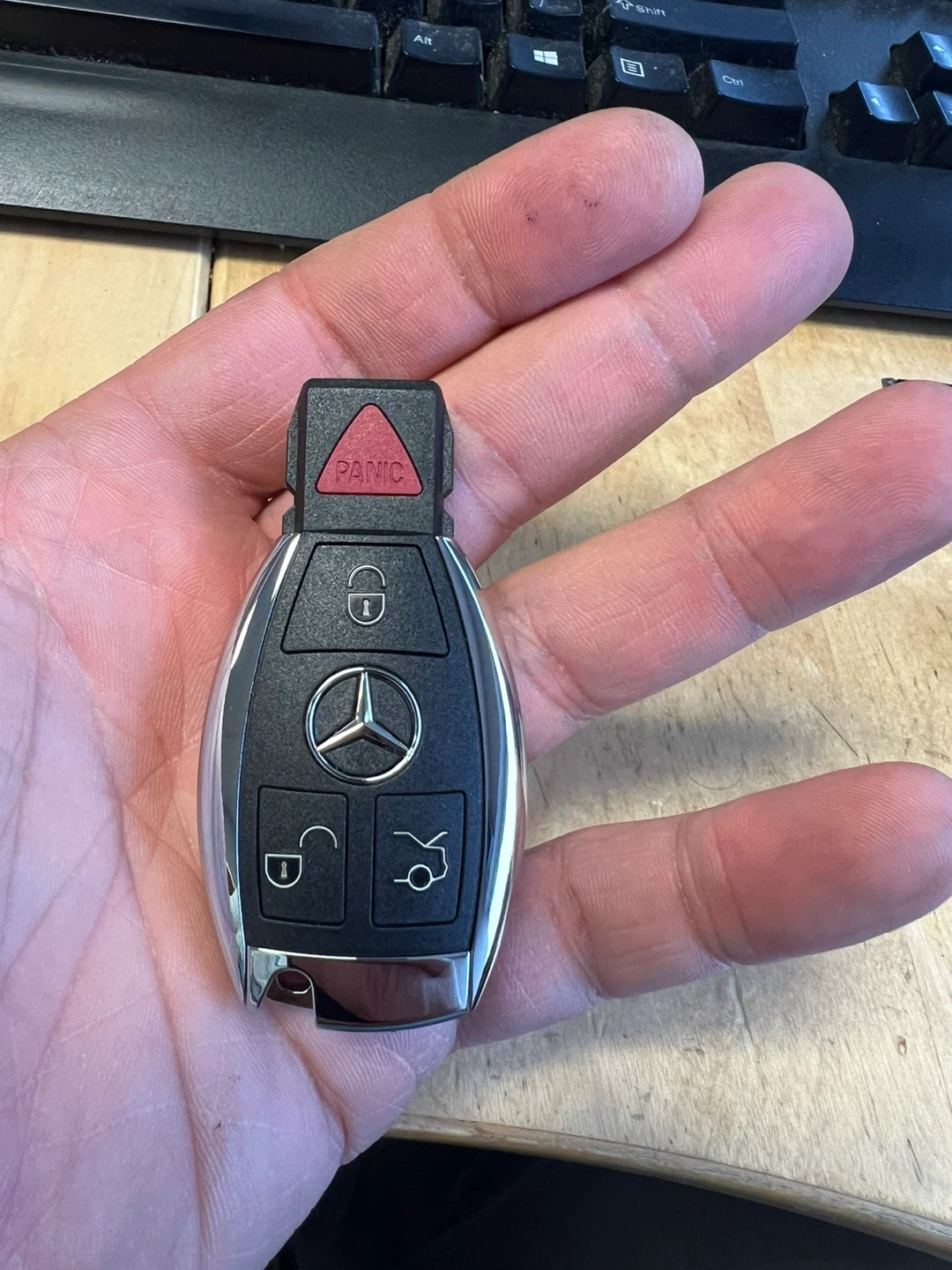 New Mercedes-Benz standard twist ignition key fob. It includes lock, unlock, panic and trunk buttons. Professional installation is available. Listing is for key alone. Thanks for looking!