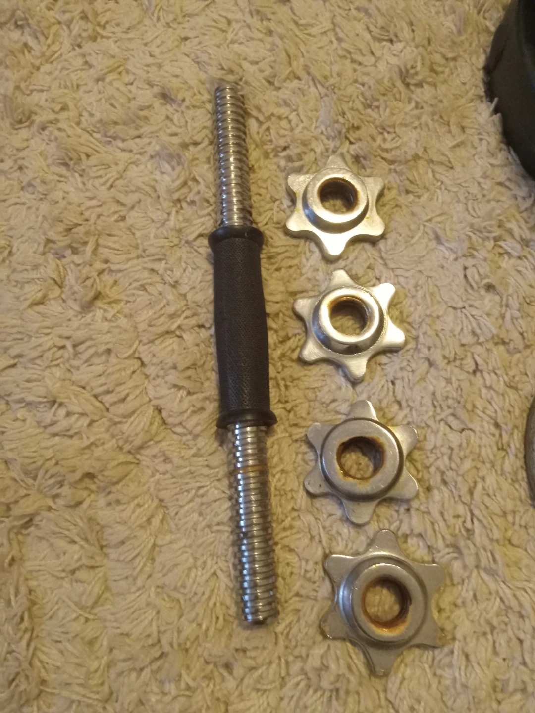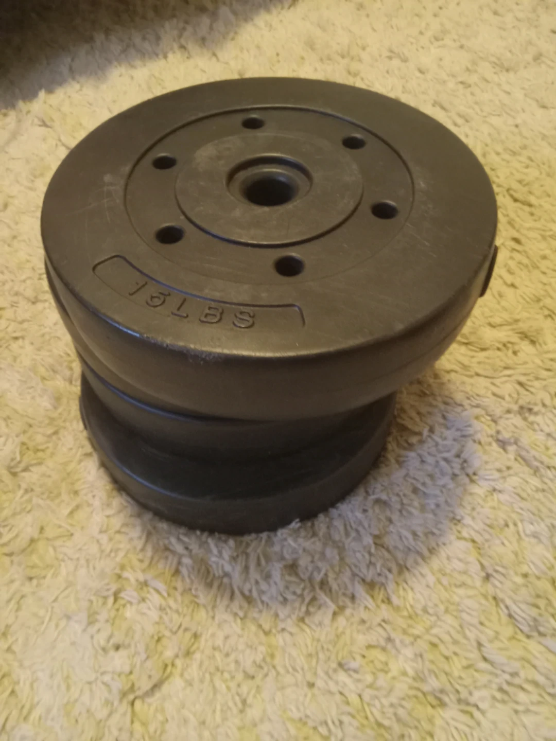 This is a set of dumbbells with a handle. Includes for 15 la plates, two 10 lb plates, two 5 lb plates, and two 2.5 lb plates. Also comes with a dumbbell handle and spin locks for the 5 and 2.5 lb plates. Great for home workouts!
