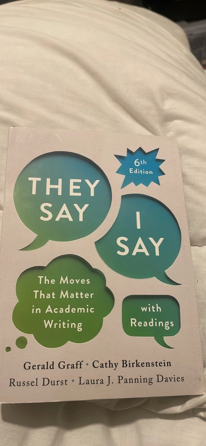 This book introduces the concepts of "They Say / I Say" in academic writing. It's the 6th edition and includes readings. This is a key text for students navigating academic discourse.