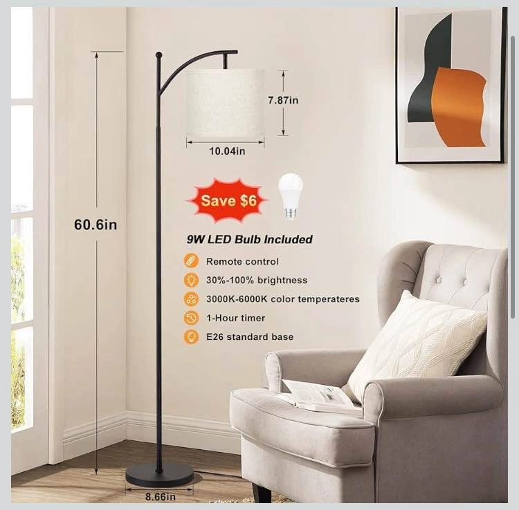 New Floor Lamp with Remote Control, Stepless Dimmable Bulb