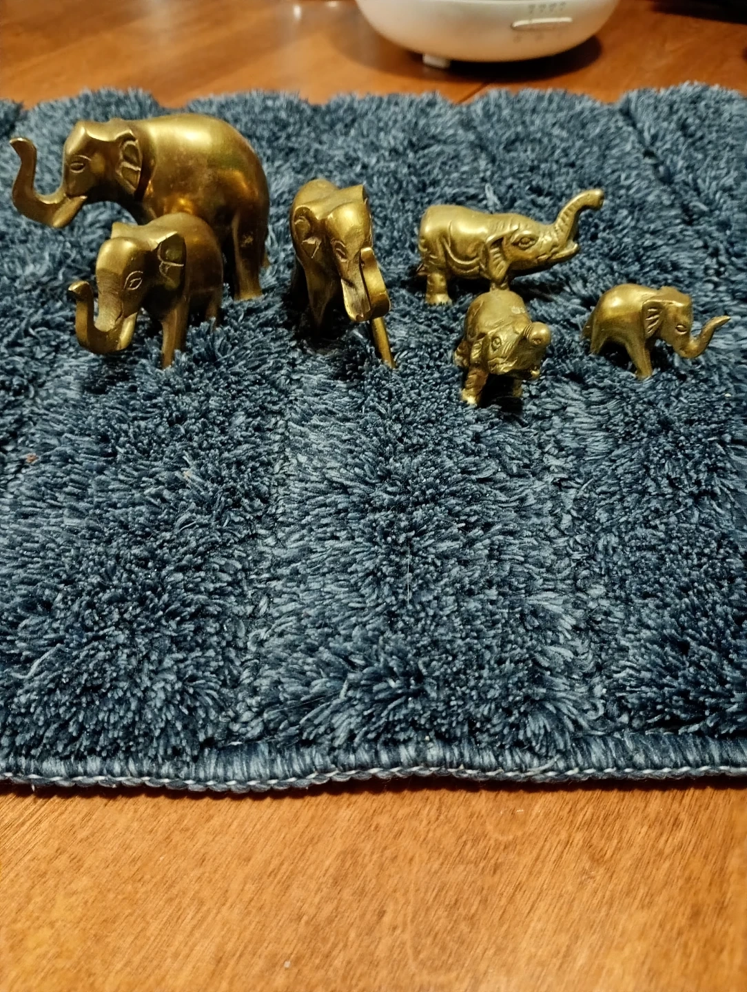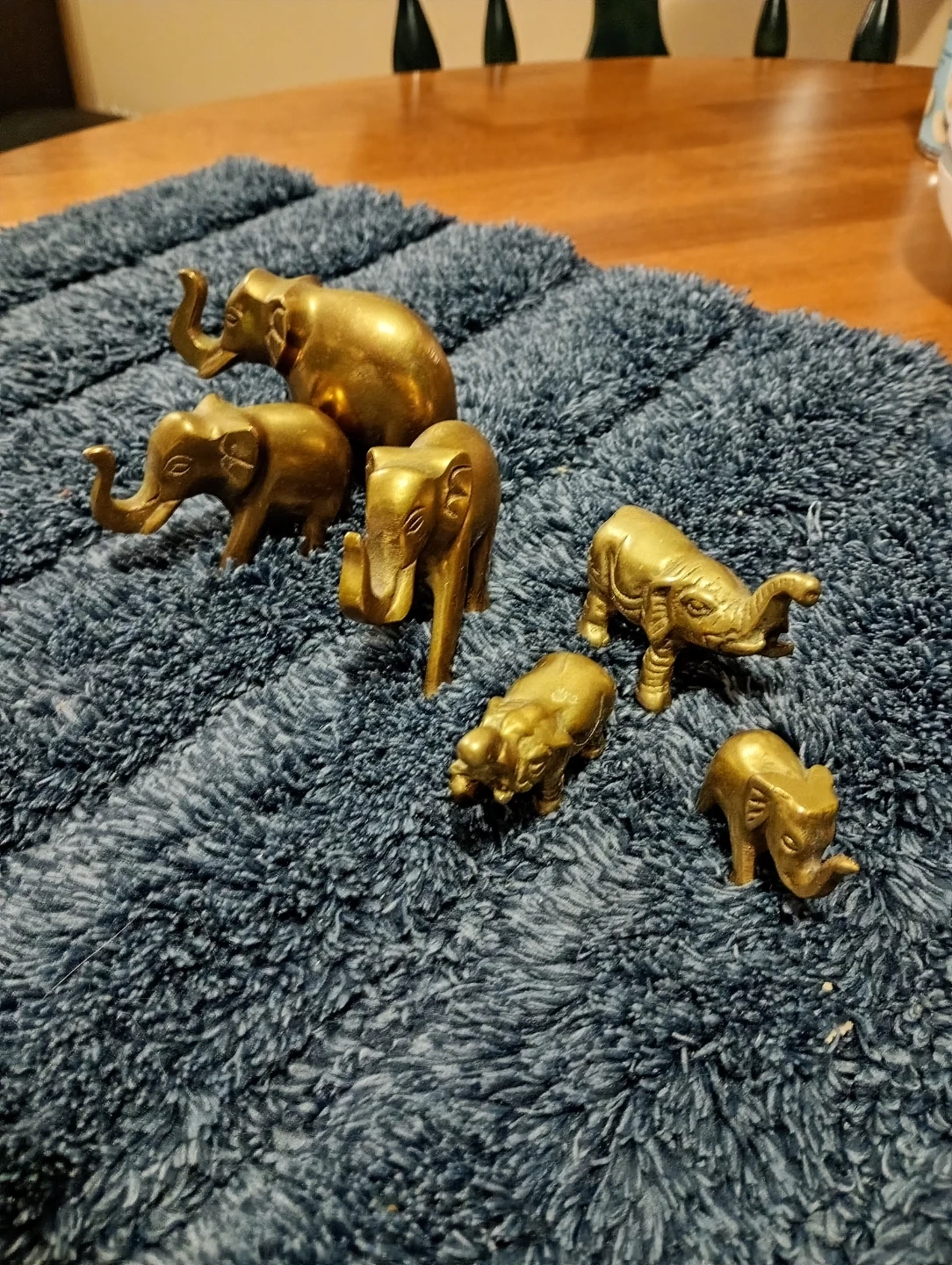 A charming collection of six brass elephant figurines. These decorative pieces are crafted from brass and vary in size. They're perfect for adding a touch of vintage charm to any shelf or tabletop. These would make a lovely gift for an elephant enthusiast!