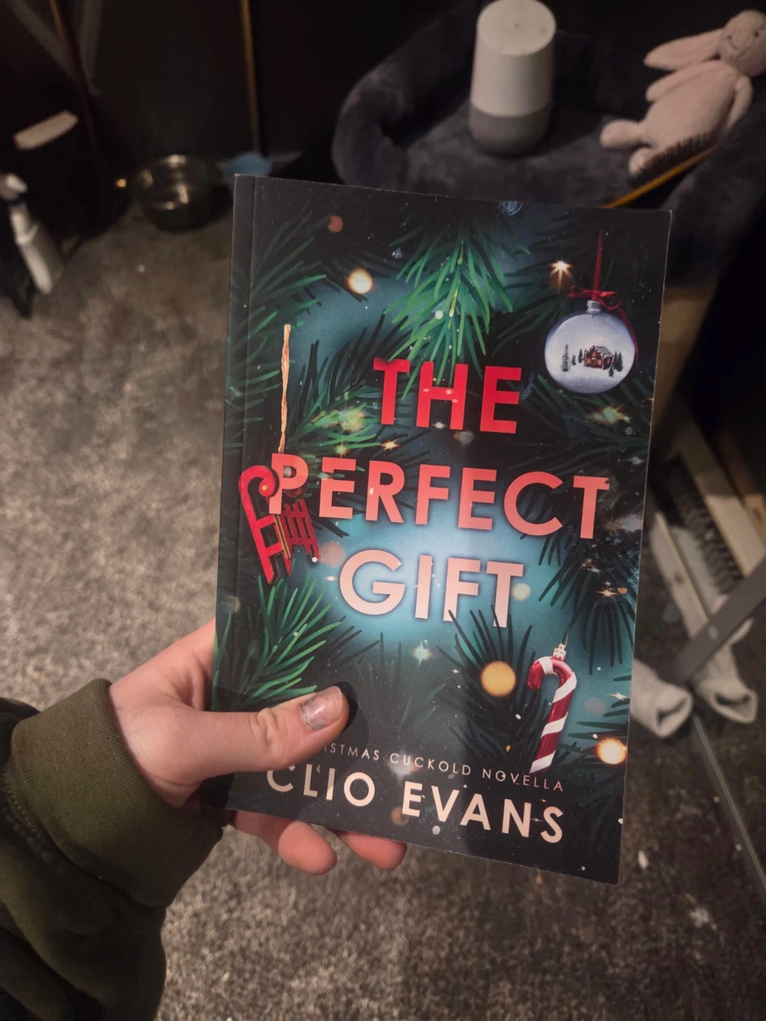 This is Clio Evans' "The Perfect Gift," a Christmas cuckold novella. It's a festive read for those who enjoy holiday romance with a twist. It's a great book for unwinding during the Christmas season!