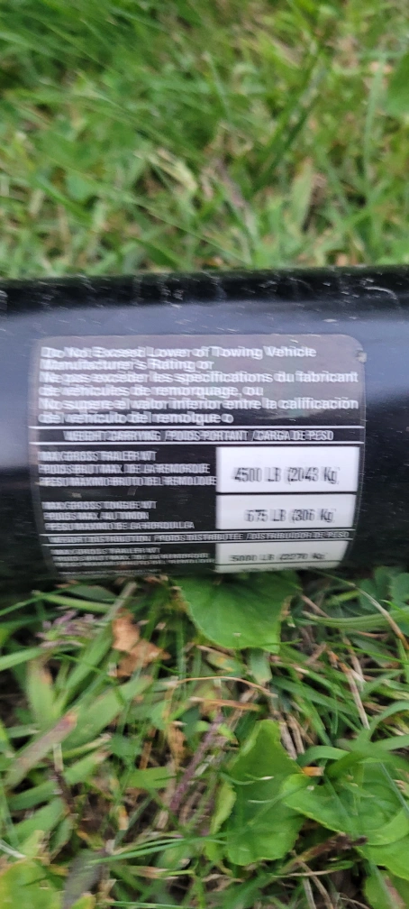 This is a hitch receiver. It has a towing capacity of 4500 lb (2043 kg) and a tongue weight of 675 lb (306 kg). This would be useful for towing trailers or other equipment. Was assembled in Honda Odyssey.
