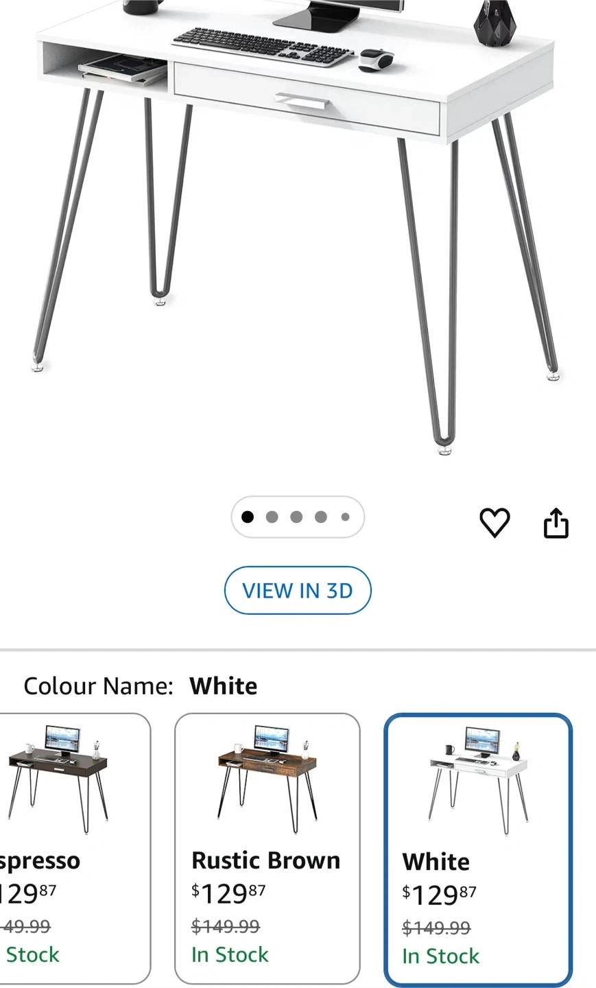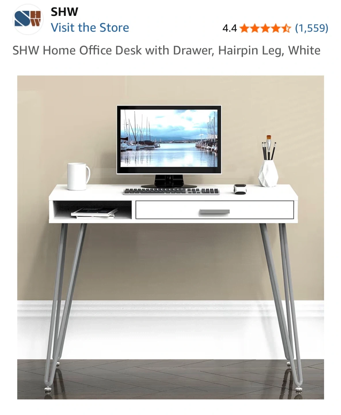 SHW Home Office Desk with Drawer, Hairpin Leg, White